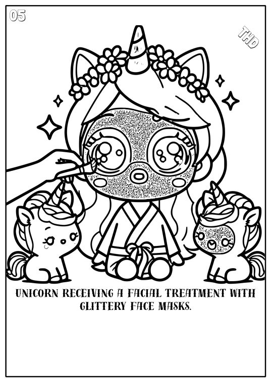Step into a world of magic and glamour with our enchanting digital coloring book. Featuring 50 unique designs, this book invites children to join unicorns in a beauty salon adventure filled with creativity and joy. Get ready for hours of colorful fun as you bring these whimsical scenes to life!