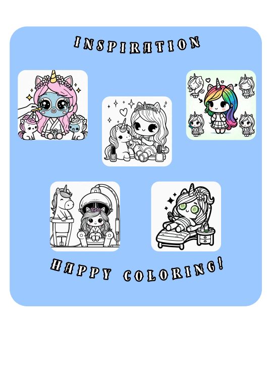 - 50 Unique Designs: Explore a delightful array of designs showcasing unicorns enjoying beauty salon activities, from styling hair to applying makeup.