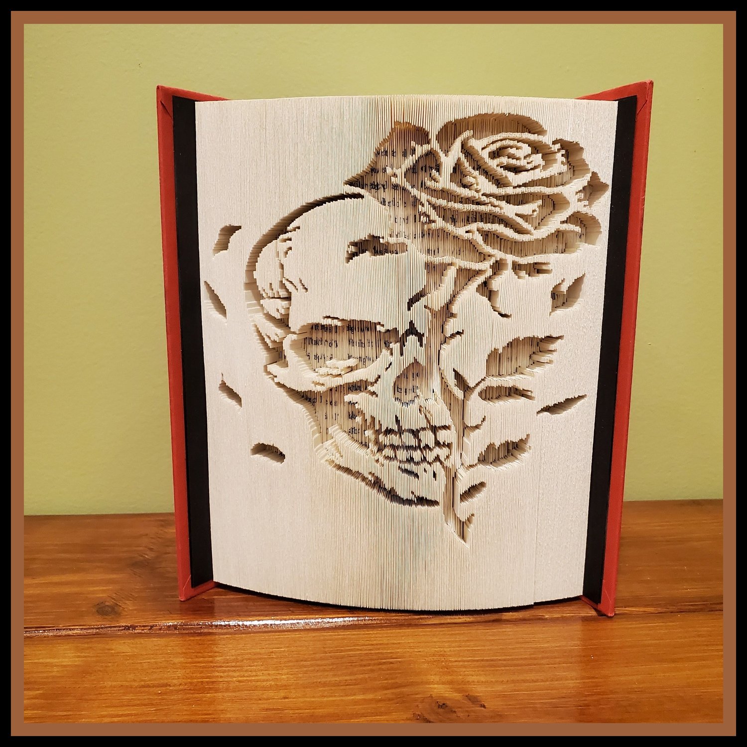 This pattern is based on a 23.5 cm book. Your book will need at least 399 pages. All books are tested , we believe we should show them completed and not super impose images on the books. If requiring a different height in the pattern, please contact us. Some different techniques are used to show what can be done with the pattern, depends on your level of expertise and knowledge as to how it comes out.
