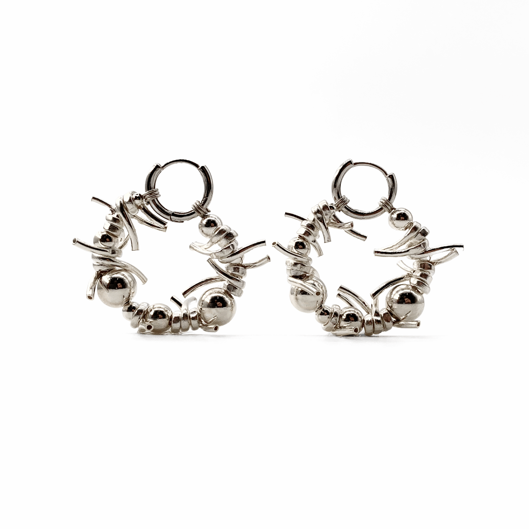 Streamlined without the pearls, this design highlights clean metallic lines and layered silver textures. Compact yet edgy, it adds just the right amount of character to everyday looks—understated, but never invisible.