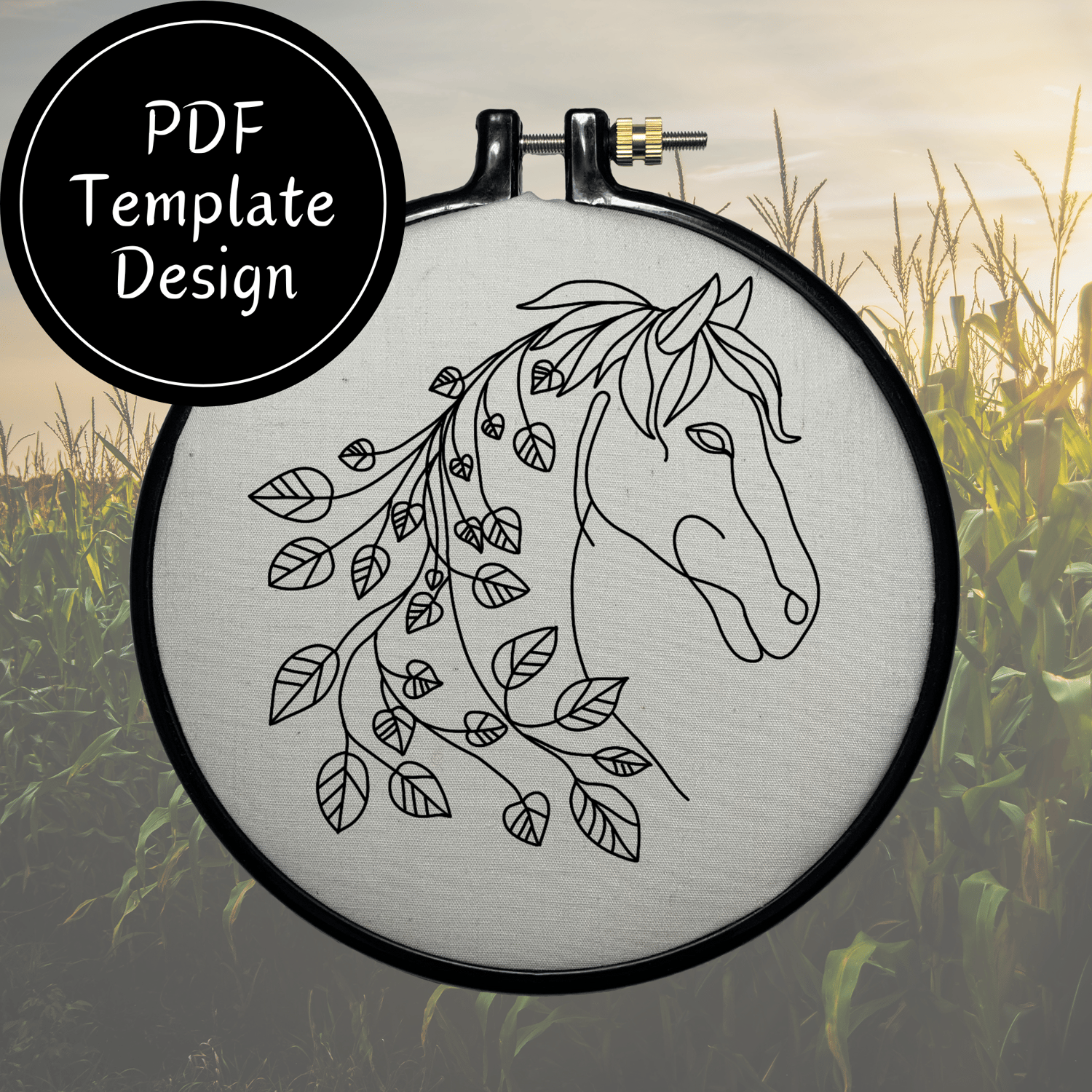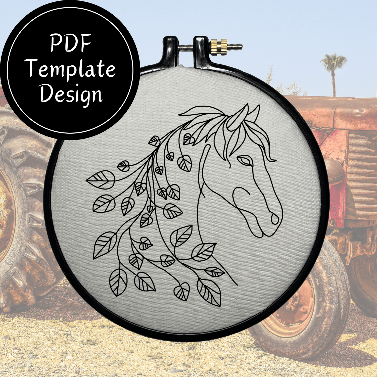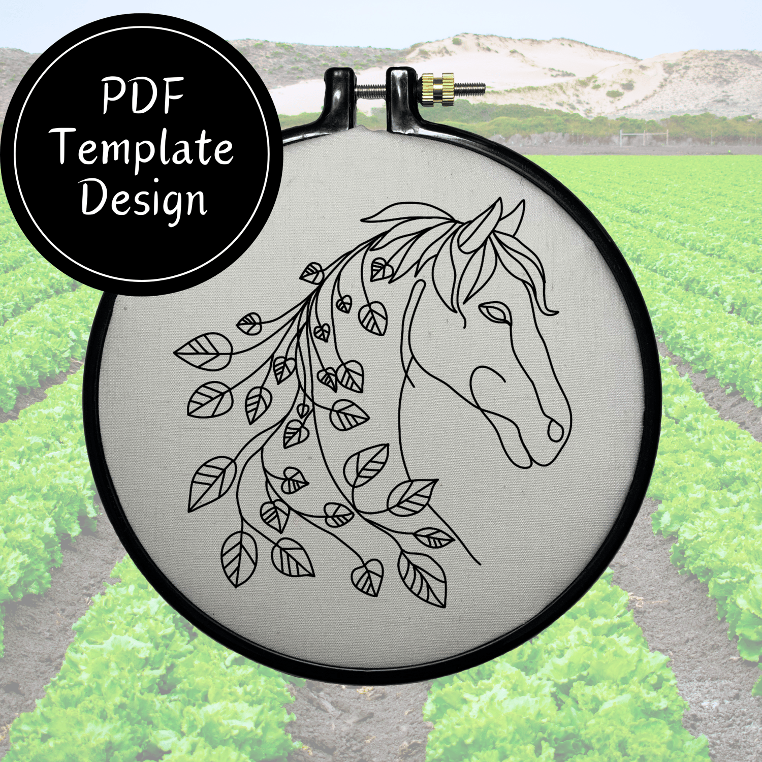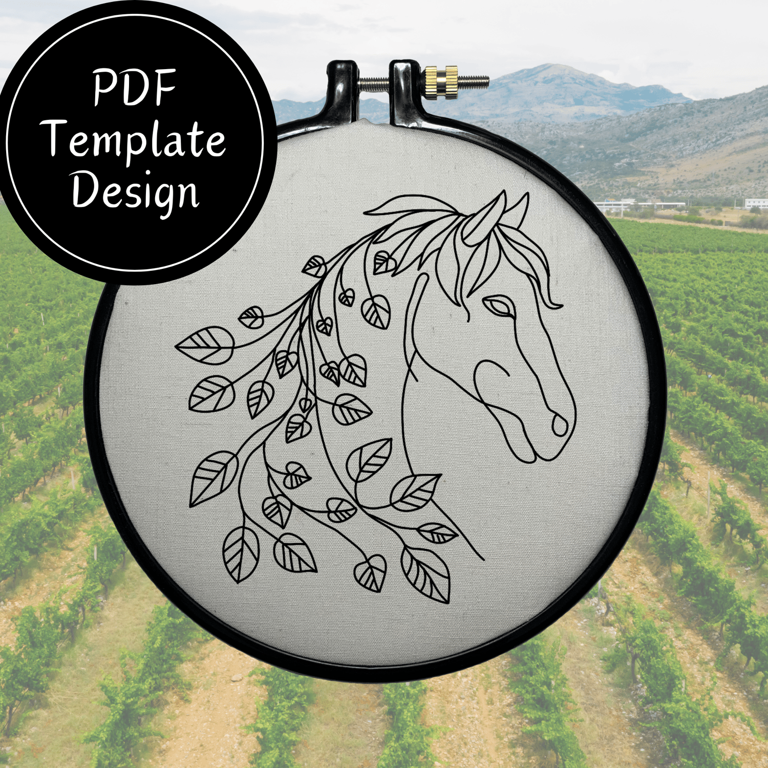 Horse Leaves & Vines Hand Embroidery Pattern DIY Embroidery