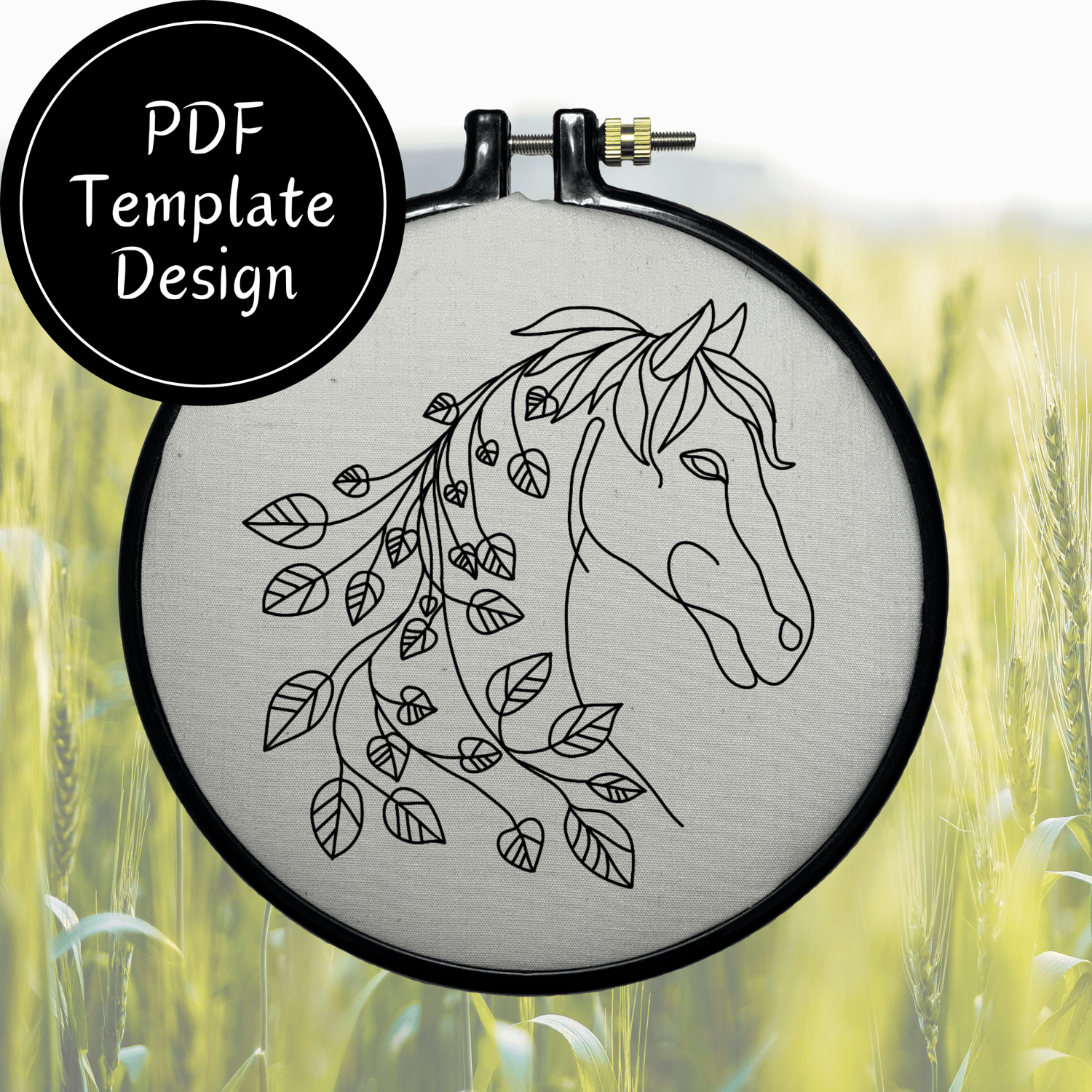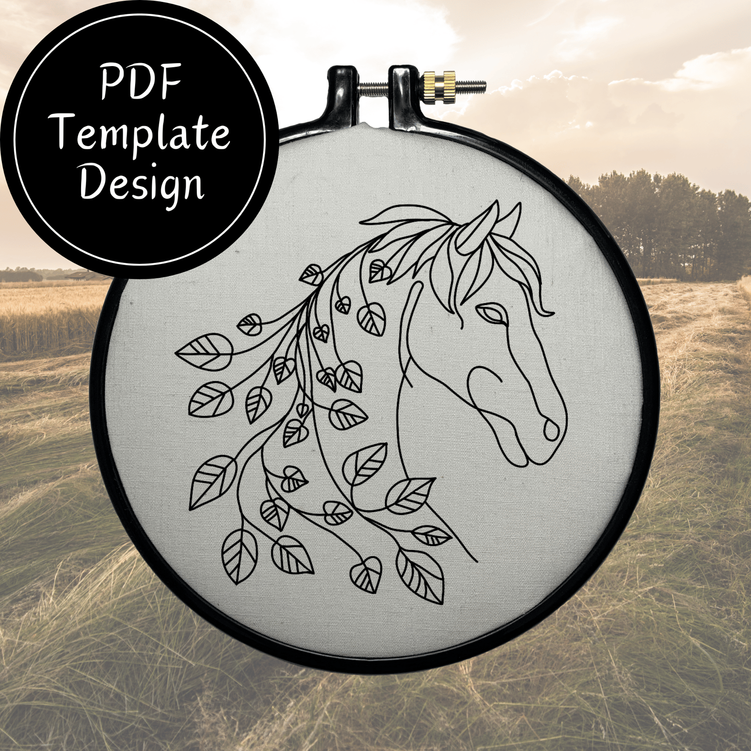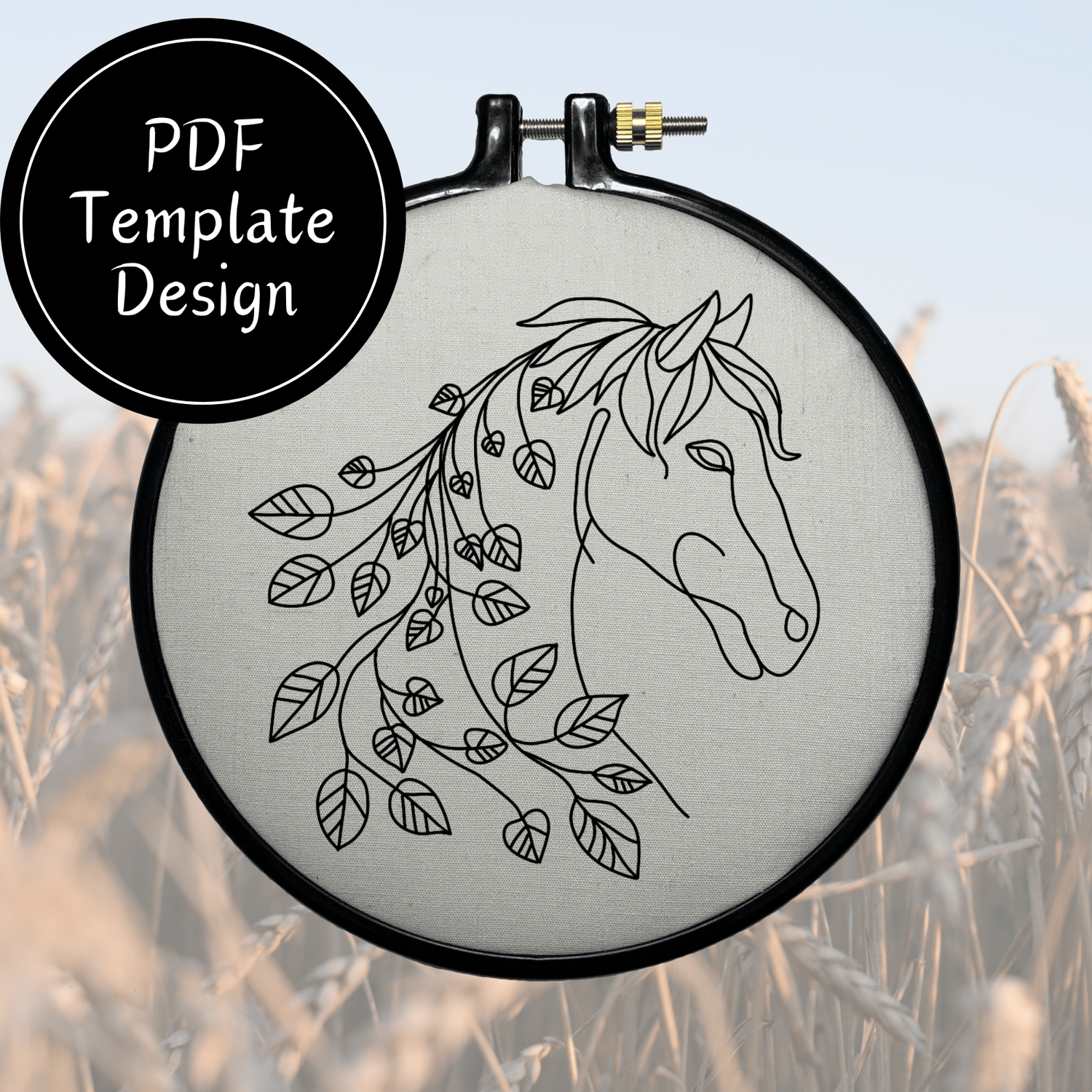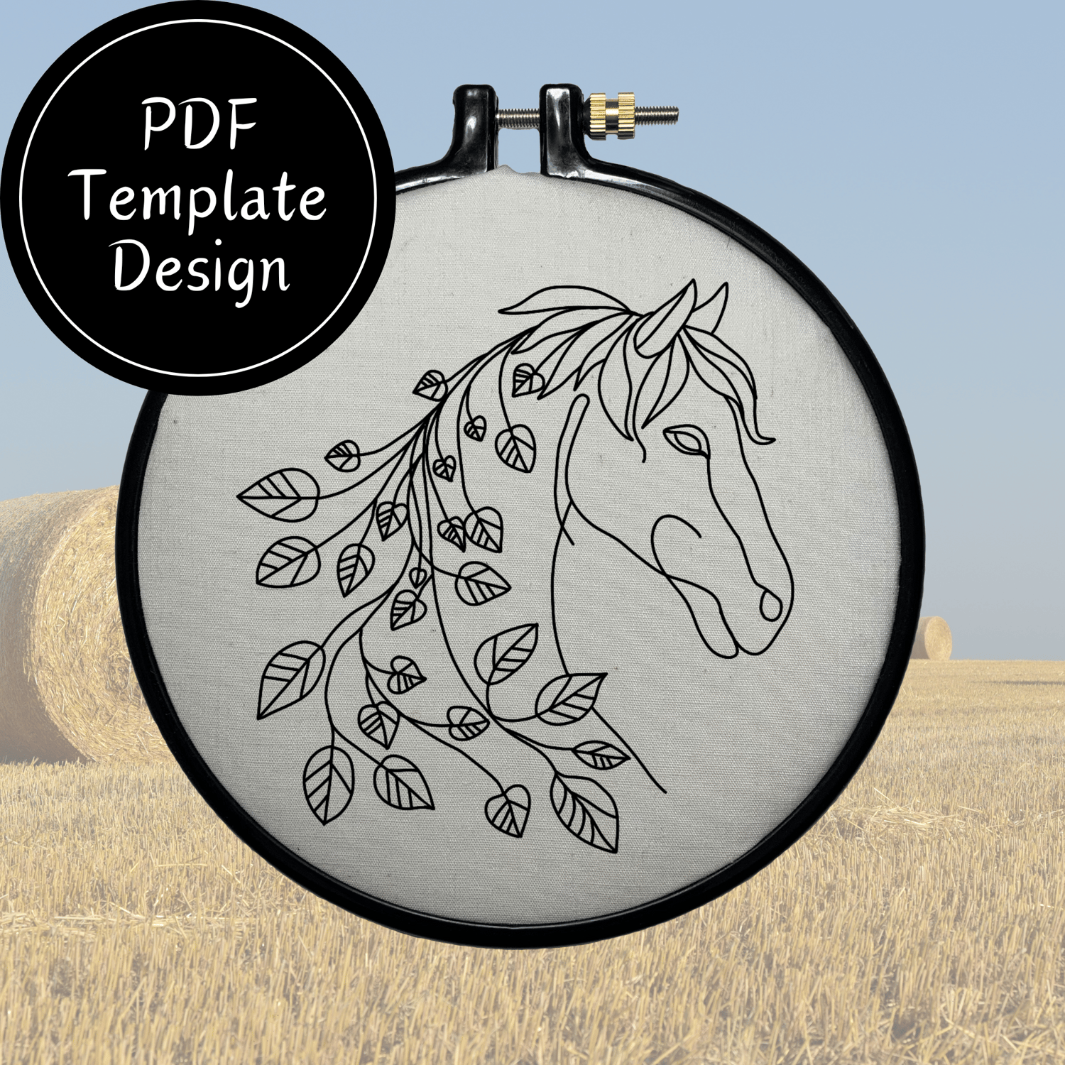 Horse Leaves & Vines Hand Embroidery Pattern DIY Embroidery
