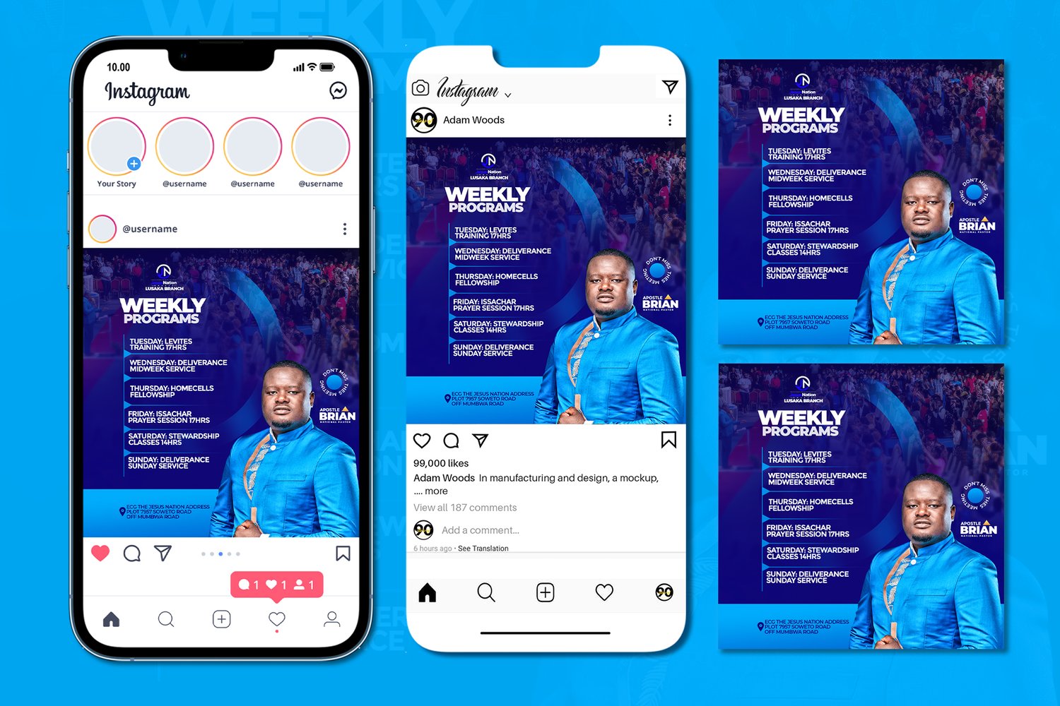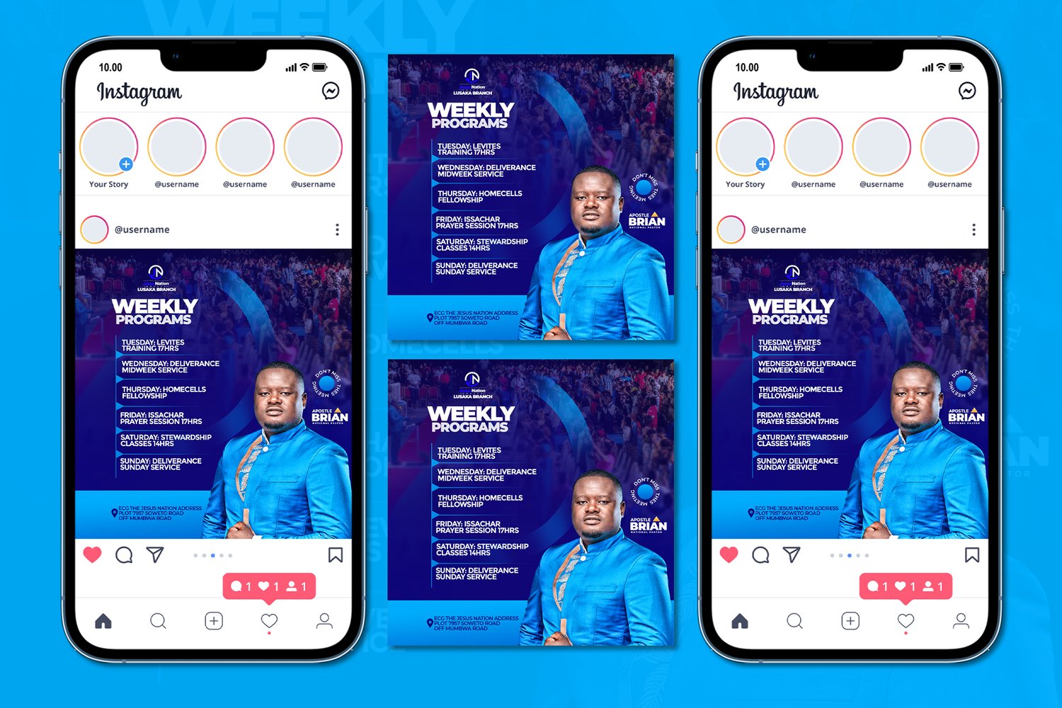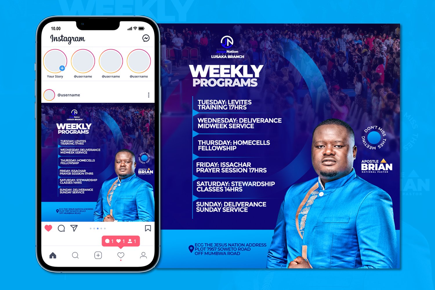 and easy to understand. Whether it’s service times, Bible studies, prayer meetings, or youth programs, this template