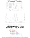 This is an elegant, underwired bra pattern in 50 sizes (see photograph for sizes). Due to the variety of sizes (sizes are nested and grouped according to band/frame and wire size/ bottom cup depth), no seam allowances are included - the pattern should be traced on to paper and seam allowances added. This gives you the flexibility to add your preferred seam allowance - I recommend 8mm however some makers use 6mm or 10mm. A short tutorial showing how to add seam allowances can be found here; https://youtu.be/BYzz99UW938