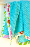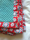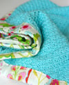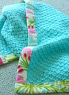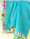 Using fabric to edge this baby blanket makes it a unique gift and is actually easier than seaming a sweater, requiring only rudimentary sewing skills.