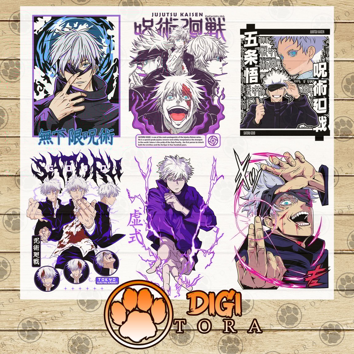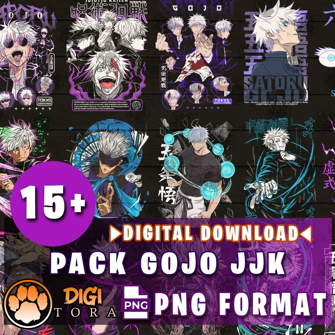 Pack Gojo Jujutsu Kaisen: 15+ High-Resolution PNG Designs | Premium Backgroundless Images for DTF, DTG, Sublimation, and More