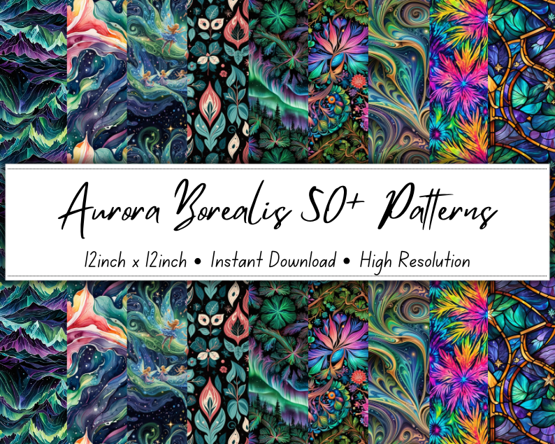 Aurora Borealis 50+ Patterns Collection | 12x12 Inches | High-Resolution Digital Printables | Instant Download