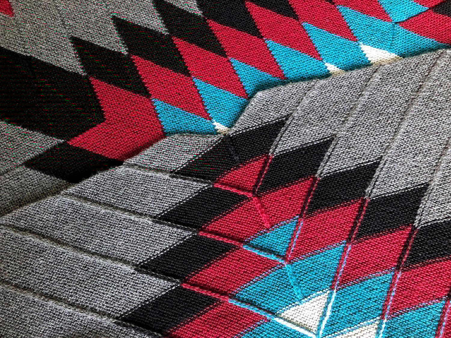 Transport yourself to the southwest desert with the Evening Mesa Blanket. The unique shape of this blanket is created by working narrow strips in garter stitch with increases along one edge and decreases along the other to create parallelograms.