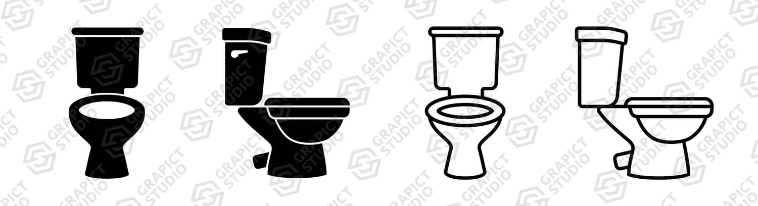 Set of 4 toilet seat icon, outlined editable stroke and solid glyph, flat stylist design. Outline and flat style toilet seat icon related to bath room, home decoration, interior design.
