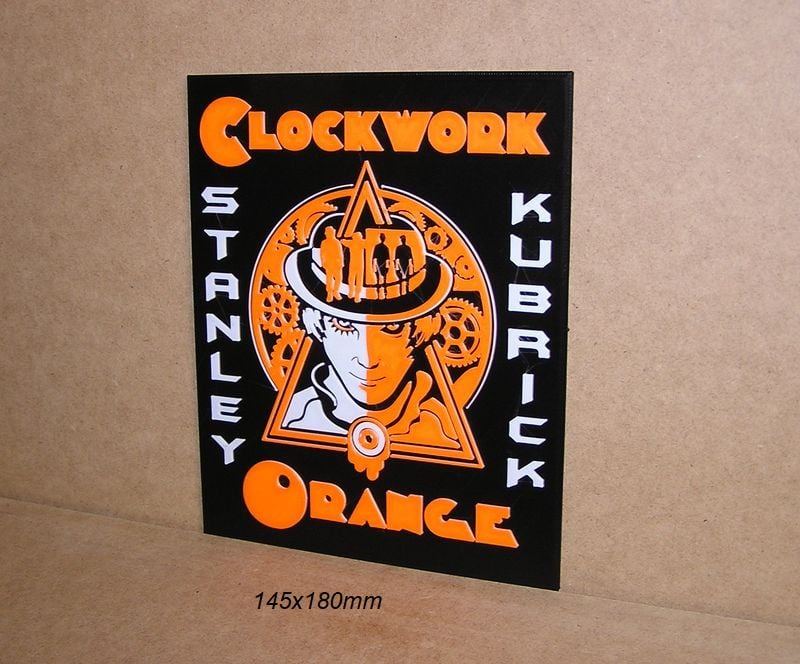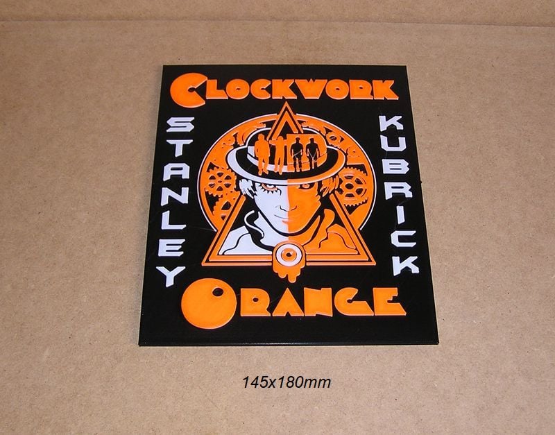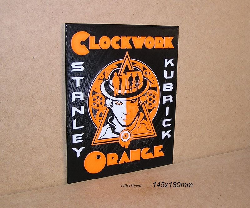 Clockwork orange, Stanley Kubrick Poster, Sign, Logo of the movie, these STL and Gcode files have been created to be printed in various colors with any FDM type printer. The color changes have been made with the Elegoo Neptune 3 Pro printer, but they can be printed on any printer.