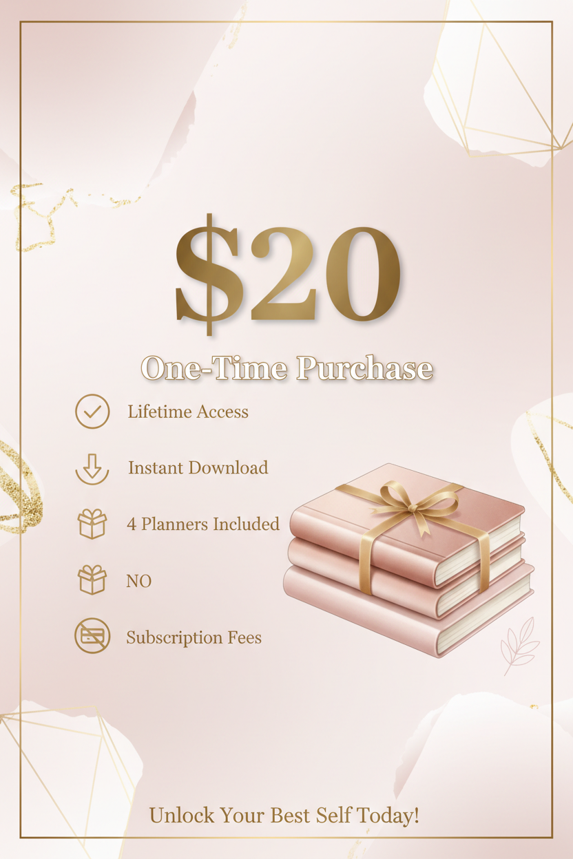 ✓ Save 25% compared to buying each planner separately ✓ Instant digital download - start using immediately ✓ Print at home or use digitally on your tablet ✓ Lifetime access - yours to keep and reuse forever ✓ No subscriptions or recurring fees ✓ Beautiful, functional designs that make planning enjoyable