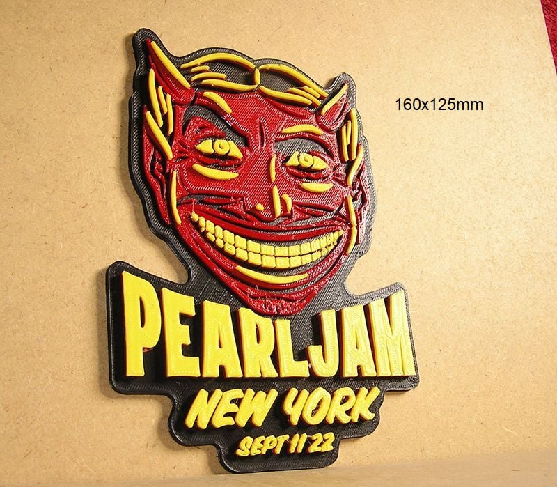 Pearl Jam New York, Poster with logo of a music group and singers, these STL and Gcode files have been created to be printed in various colors with any FDM type printer. The color changes have been made with the Elegoo Neptune 3 Pro printer, but they can be printed on any printer.