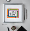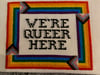 Hi! We’re Queer Here is a statement, a proclimation, and a credo. Love your self.