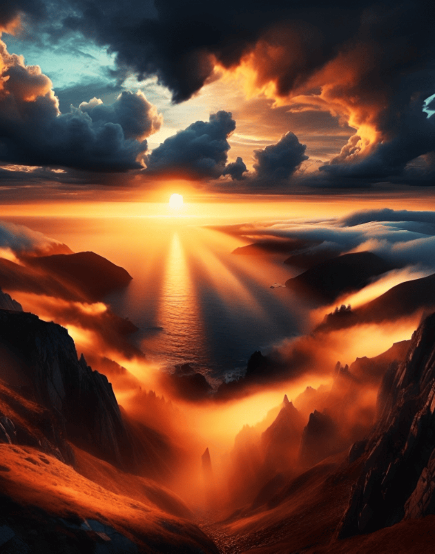 Sunset, Dusk, Mountain Sunset, Vintage Landscape, Nostalgic Nature, Cool Nature, Rustic natural Landscape, Painting.