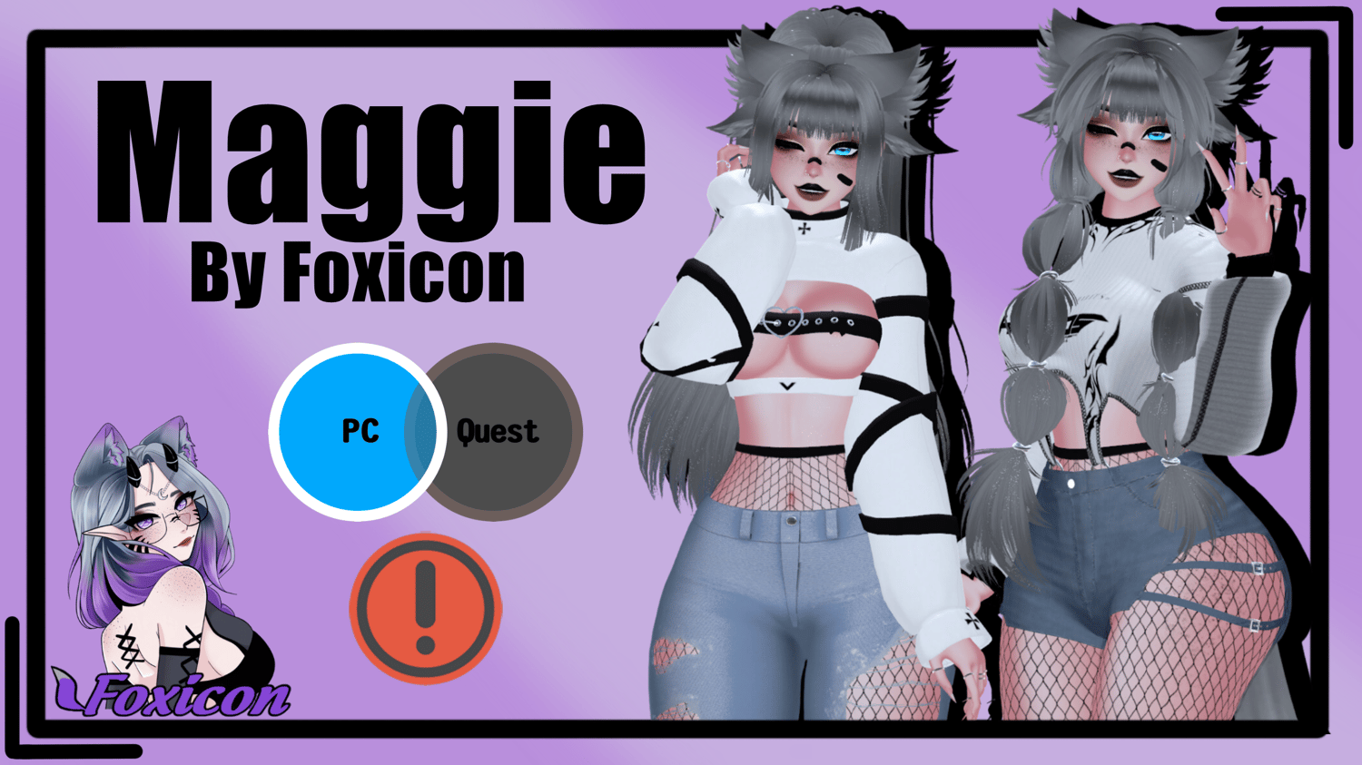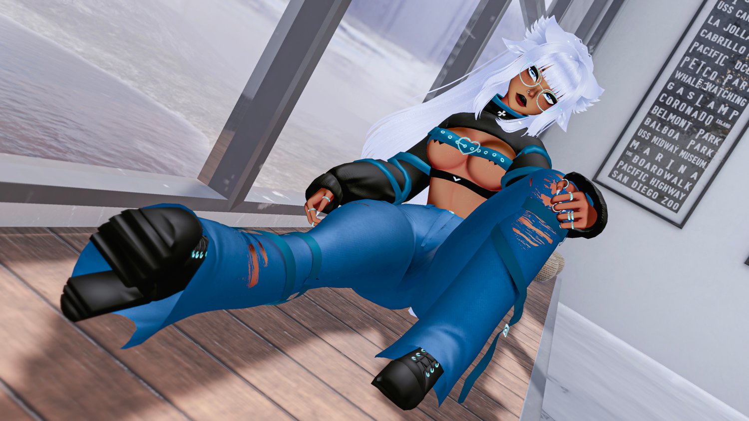 | Body by Pandaabear#9873 (EDITED BY ME, NO REUSE) | Head/Head Textures by DUCC#0008 (EDITED BY ME, NO REUSE) | Main Body Texture and Face Stripes by Ying#6669 (EDITED BY ME, NO REUSE) | Hair Textures by Cicieaaa#7777 | Fluff's ToolBox | VRCFury Tool | GoGoLoco by Franada | Rings by xSnail#2902 | Fake Index by Milkers~#4457 | Thin Glasses by nini | Boots by The Oasis | Bandaids by Salted | Earrings by karamell | Chest Coverings by cupkake (Nitro) | Nose Ring by Adora#0951 | Ears & Tail by Nikkie | Bangs by @NESSYY. | Chest and Abdomen Coverings by Ante | Sneakers by Deimos | Thick Glasses by Salted | Hairs & Bodysuit by Saikura | Crop Top by Lolo | Fishnets by Loki's Vanity | Jeans by Sadge | Shorts by KingShai69 | Strapped Top by minki |