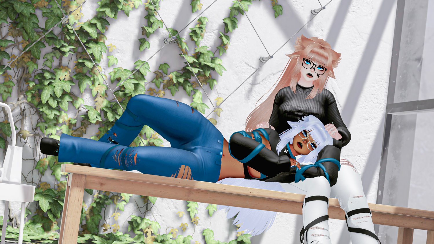 ♡ | Toggles: | Outfit: Strapped Sweater, Bodysuit, Crop Top, Chest Coverings, Jeans, Shorts, Abdomen Coverings, Fishnets, Boots, Sneakers | Animal: Elf Ears, Upper Ears, Lower Ears and Tail | Hair: Ponytail and Pigtails |