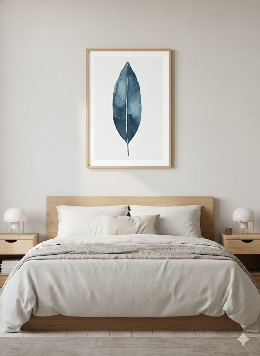 This minimalist botanical design is perfect for modern bedrooms, living rooms, offices, and meditation spaces.