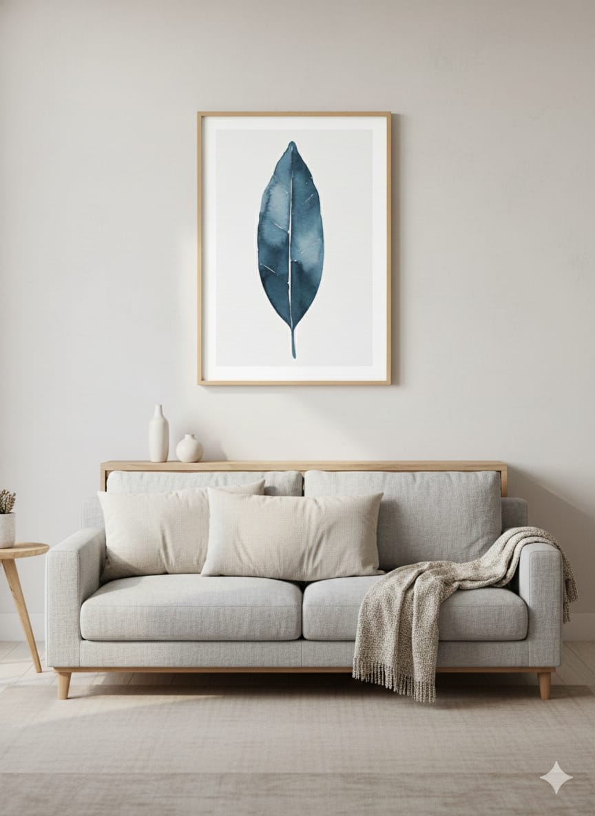 Bring calm and elegance into your space with this blue watercolor leaf printable wall art.