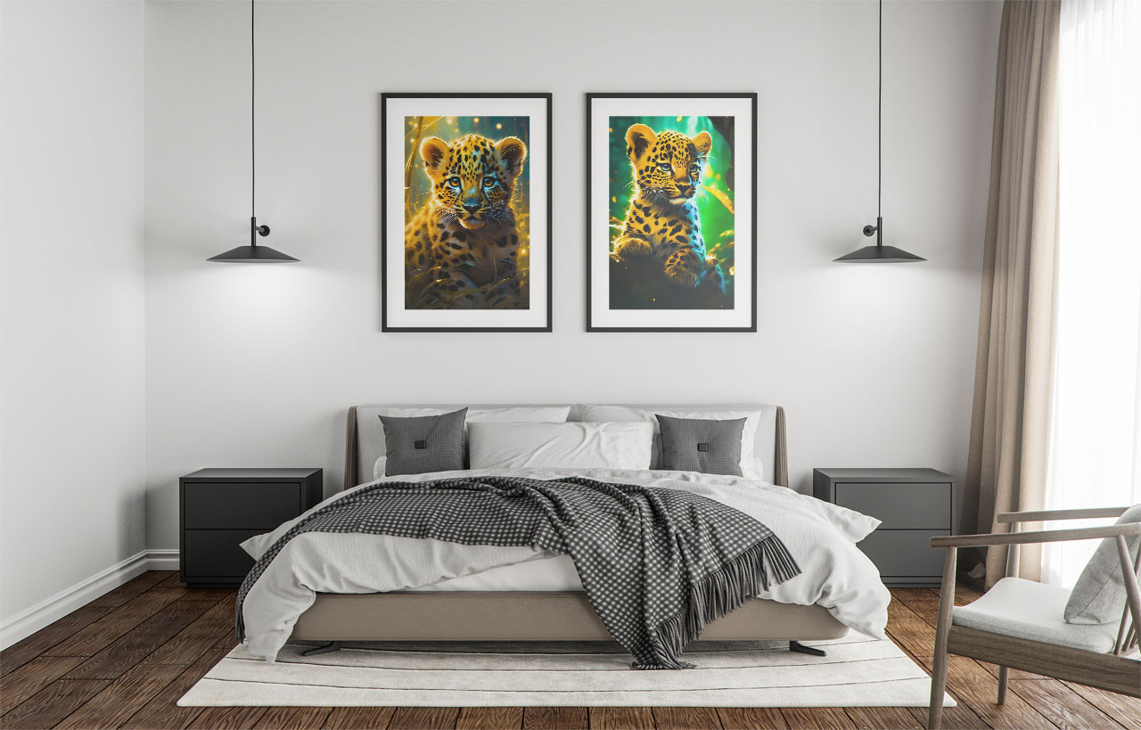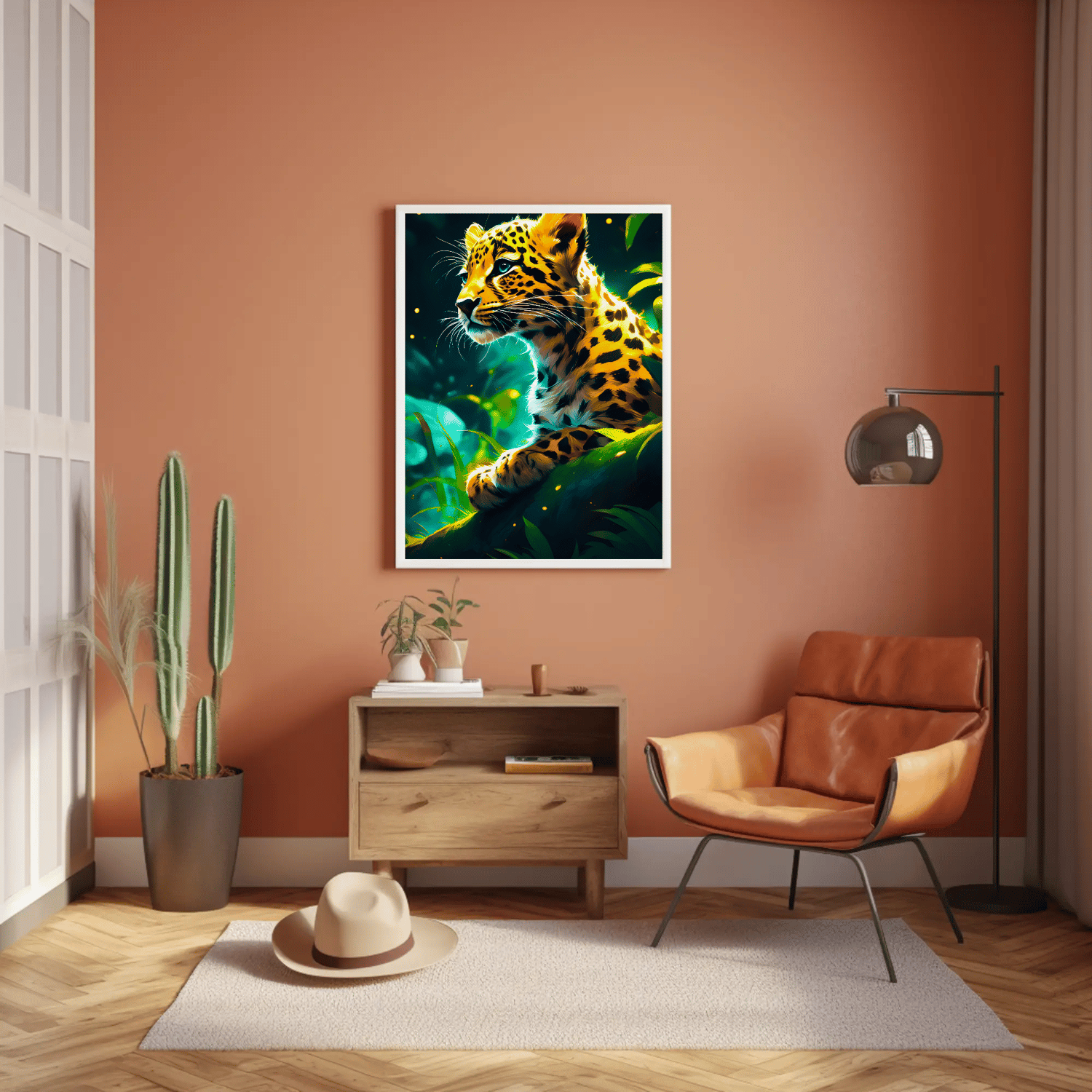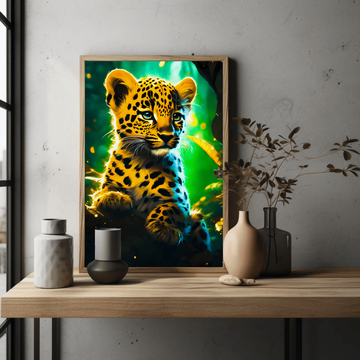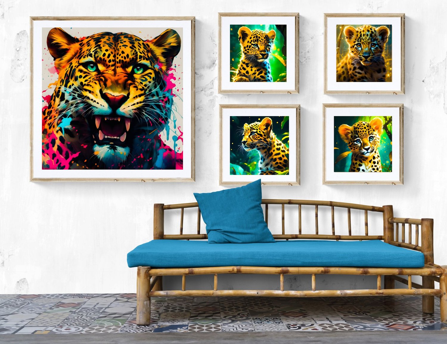 Introducing our vibrant wall art featuring cute and captivating Jaguars. This eye-catching piece is designed to add a touch of color and personality to any room, making it a perfect addition to your home decor.