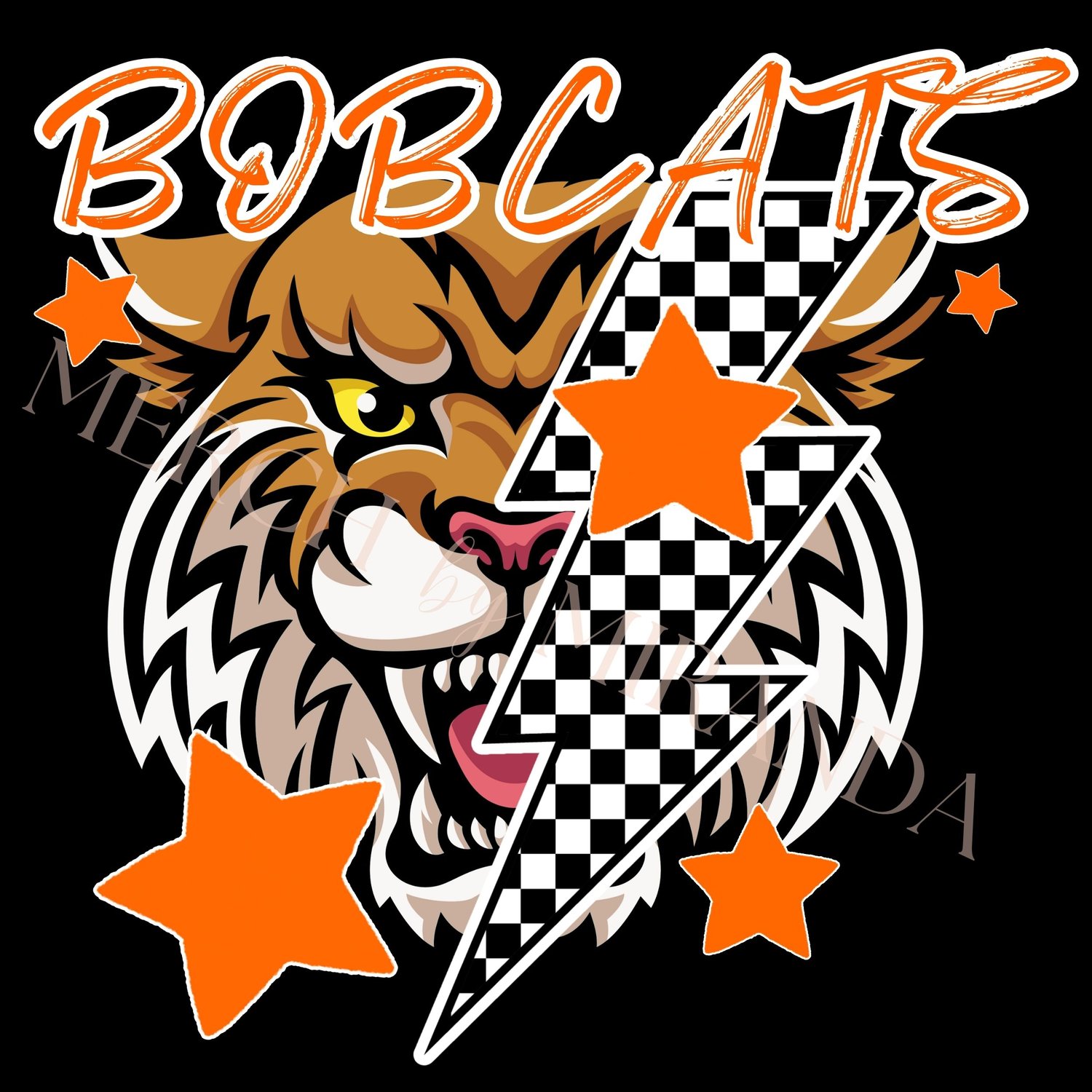 Bobcat Mascot Orange | Sublimation Design | Digital Download | School Spirit Shirt PNG | DTF Design | Lightning Bolt-Checkered with Stars - Bobcats