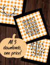 For those more traditional fall decorators, this set of three printable wall art designs sends a subtle nod out to the outdoor entheusiasts out there. With the antlers, fall greeting and one to name lovely things about this time or year, your decor will zing this season!