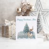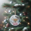 Presenting the adorable Christmas Deer, adorned with a round disc bauble-style design and a festive forest scene.
