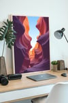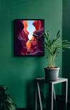 This stunning image captures the mesmerizing beauty of a slot canyon, with its swirling walls of vibrant colors. The smooth, sculpted rock formations create a sense of depth and movement, drawing the viewer into the heart of this natural wonder. The interplay of light and shadow enhances the rich hues of the sandstone, creating a truly captivating scene. This image was created using AI as a visualization tool.