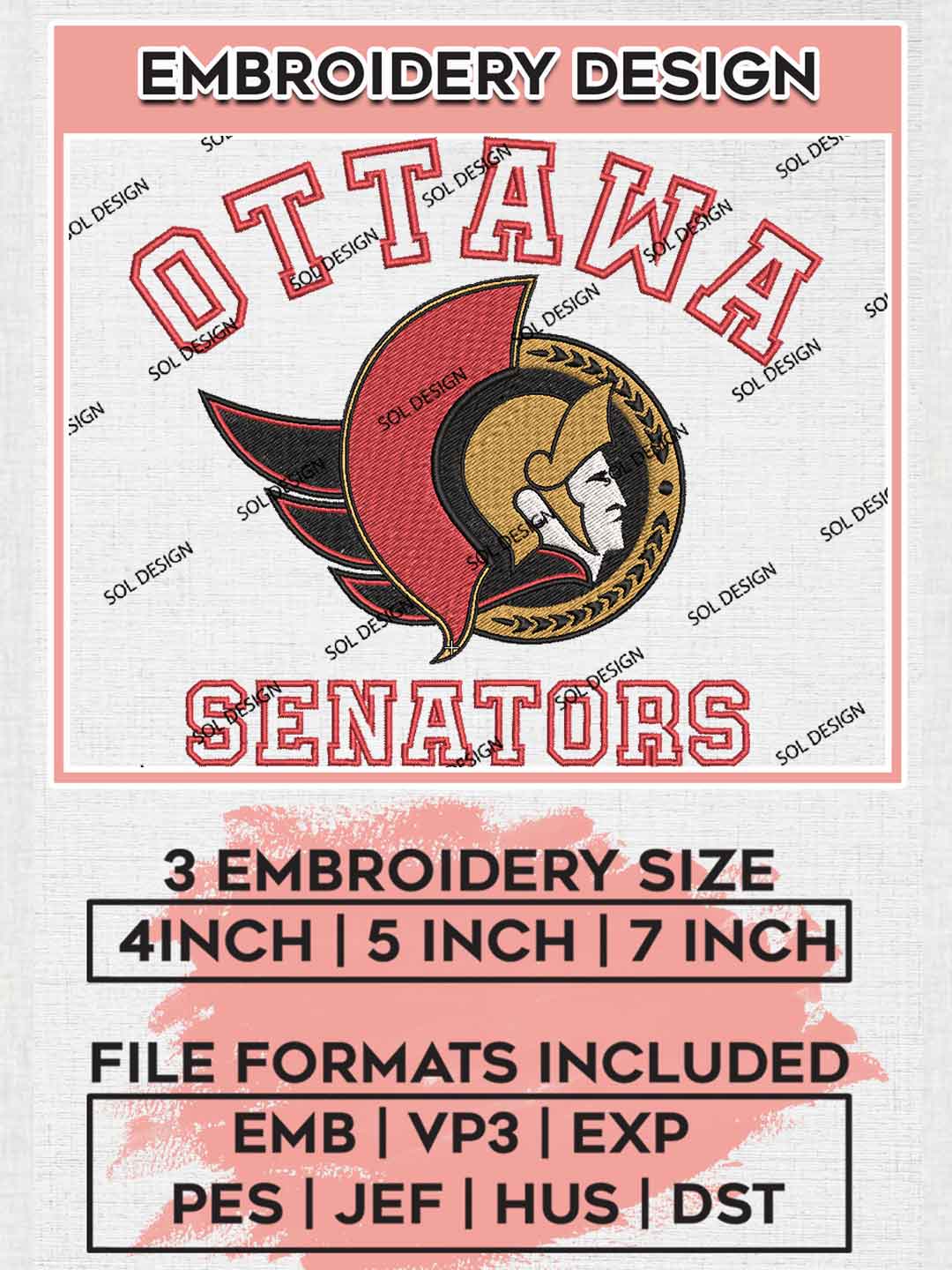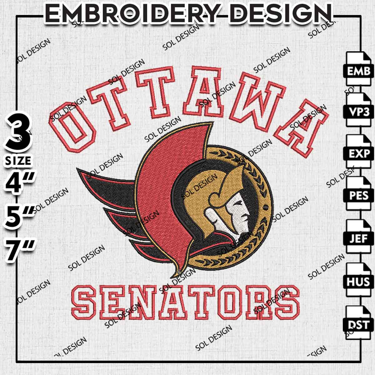 NHL Ottawa Senators Team Word Mascot Logo Embroidery Designs, Ottawa Senators Hockey Team Embroidery Files, NHL Senators Team Logo Embroidery, NHL Hockey Team Machine Embroidery Design, 3 sizes, Digital Download