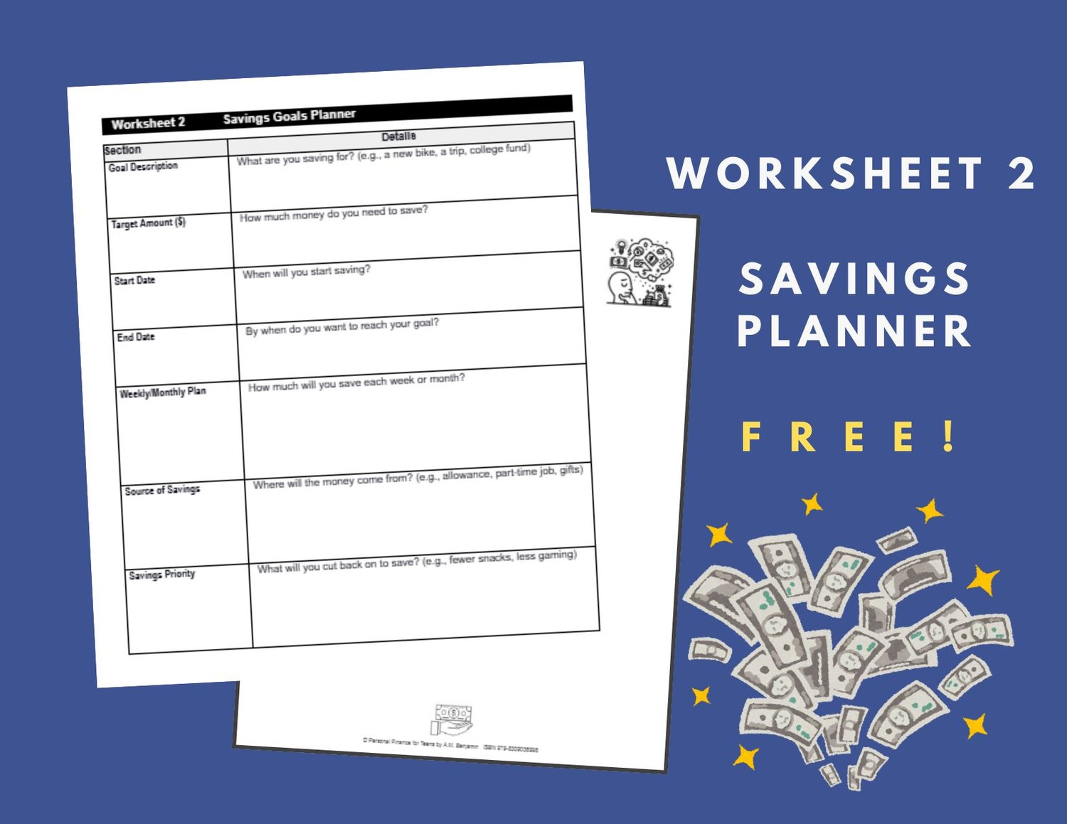 Worksheet #2 - 💸 The Savings Planner Worksheet helps you plan and track your savings in a visual way. This is the second step. Take control of your money—starting now! Ready to turn your "someday" into "heck yeah, I bought it!"? This Savings Planner Worksheet is your go-to tool for making money goals actually happen. Whether you're saving up for a new phone, concert tickets, college, or your first car, this sheet helps you plan it out step-by-step—without the stress.
