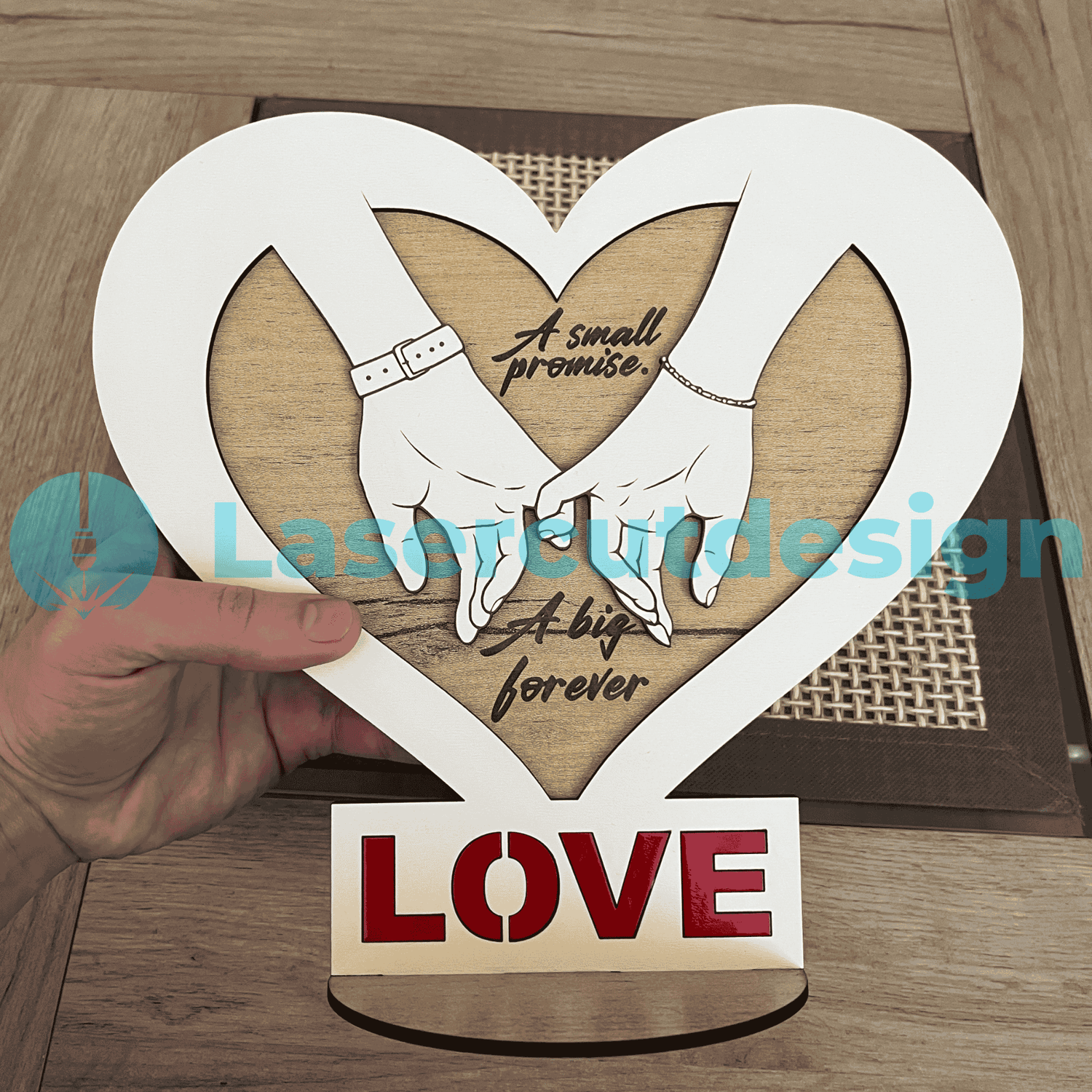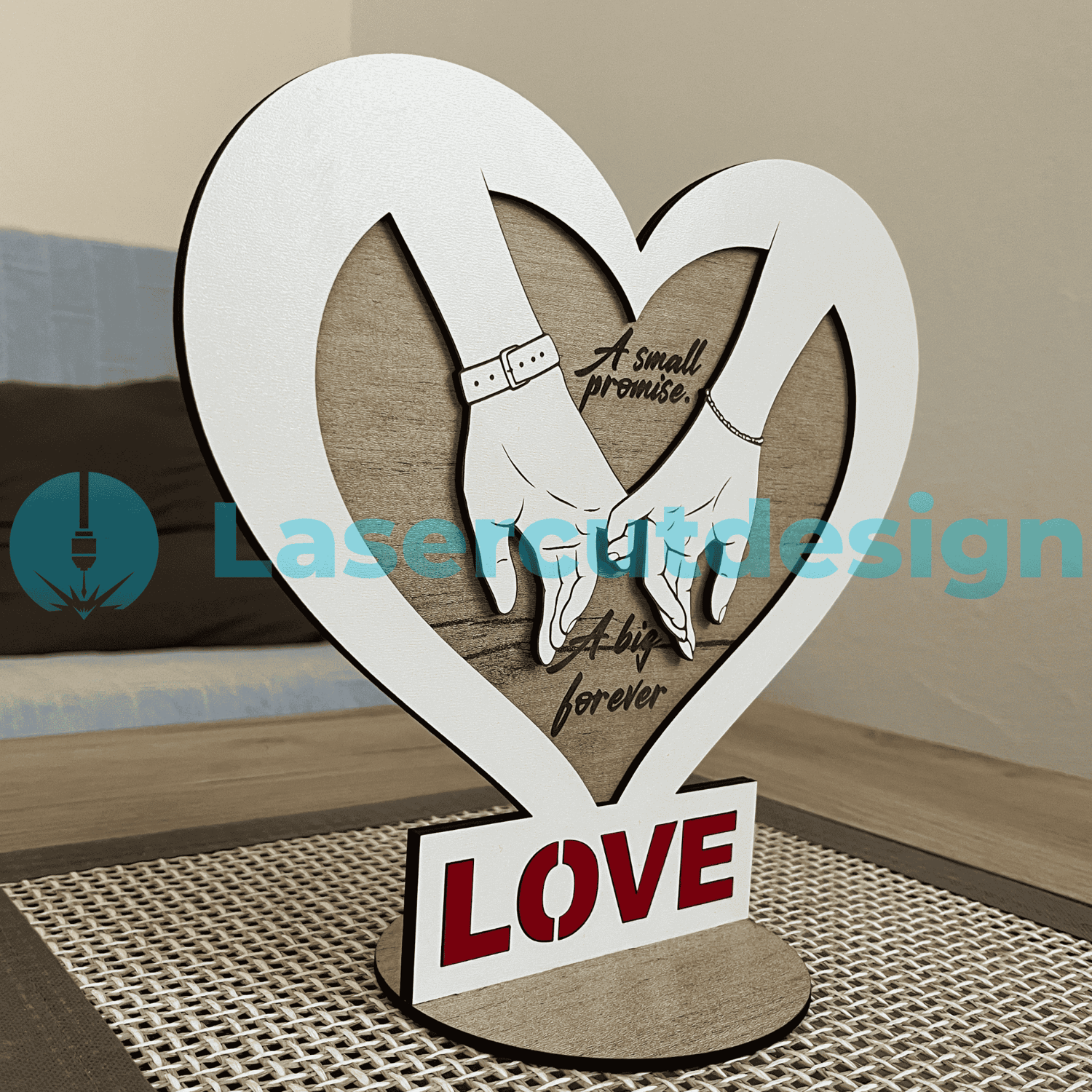 Love Heart SVG DXF AI | Connected Hands Laser Cut File | Valentines Day Love Sign | Romantic Decor 3mm