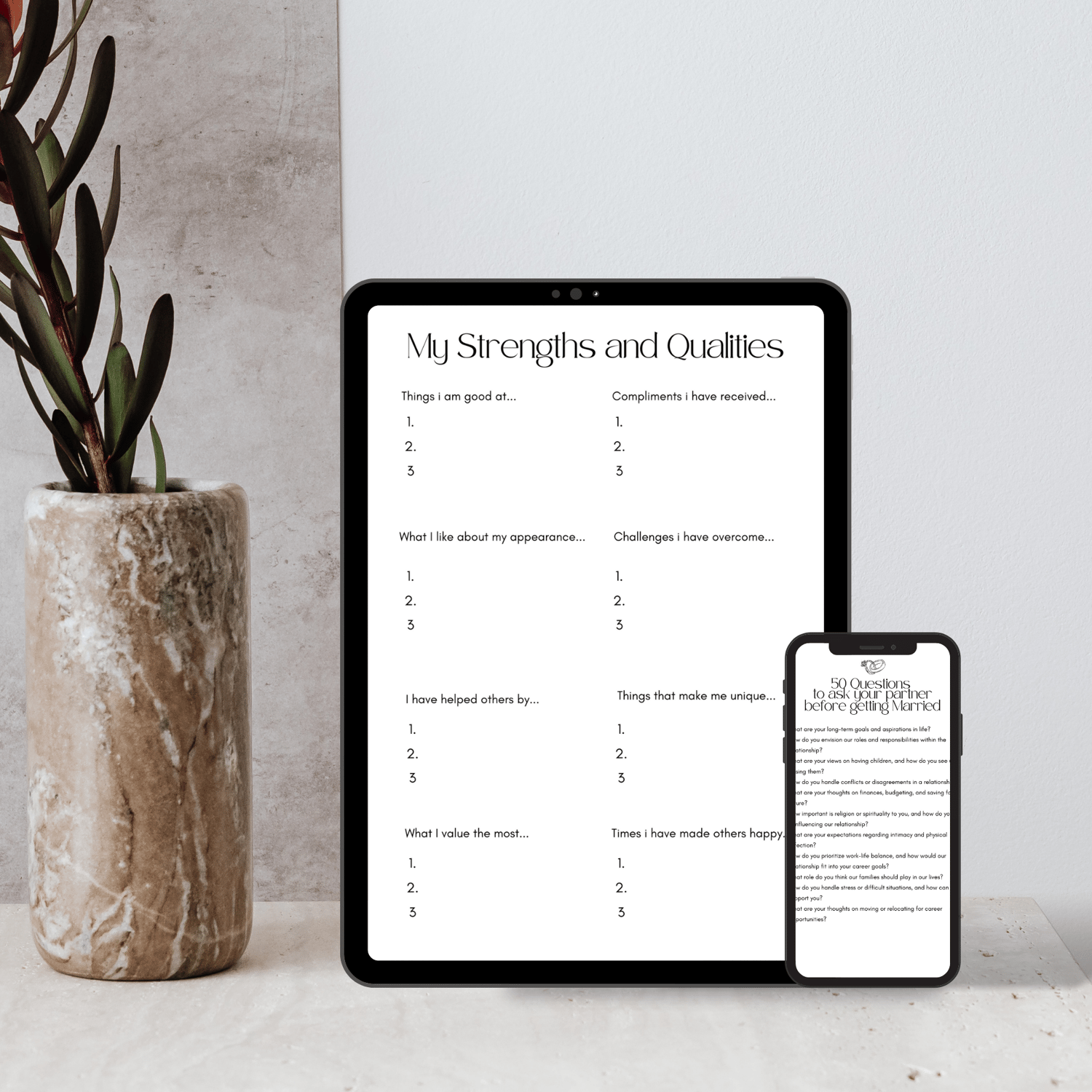 In this 20 page PDF workbook, you'll find tools and exercises curated to promote a thriving and healthy relationship. Whether you're embarking on a new journey together or seeking to enhance the foundation you've already built, our guide is your go-to resource for navigating the complexities of modern relationships.