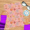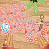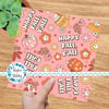 Happy face daisies, pumpkin pie, cozy coffee, leaves and mushrooms. Cute for fall, Halloween and Thanksgiving season.