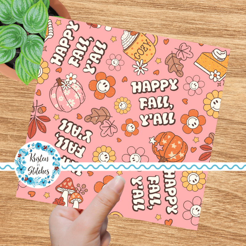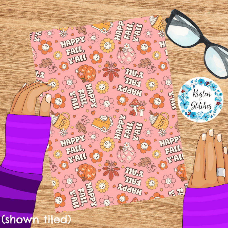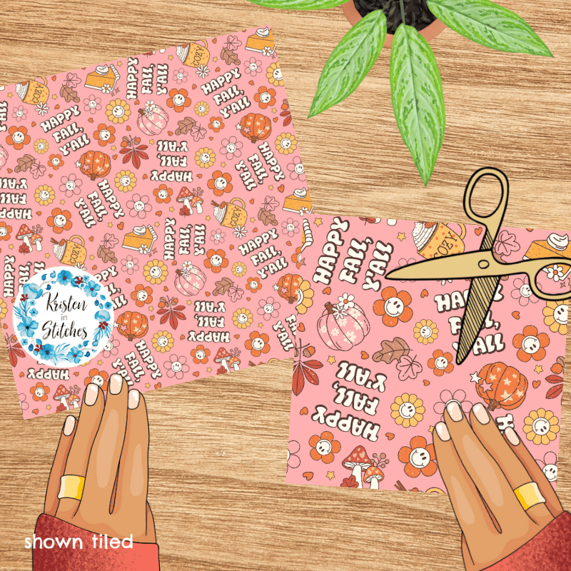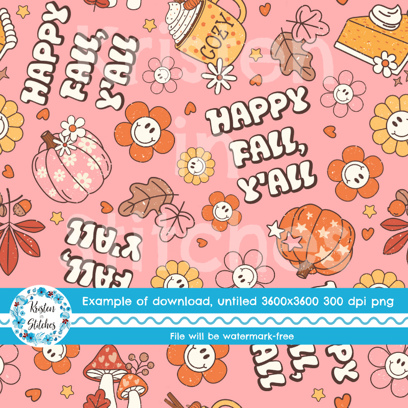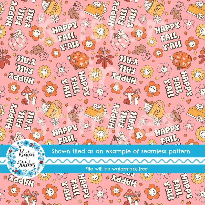 Happy Fall Y'all Retro Autumn Halloween Thanksgiving Seamless Pattern