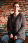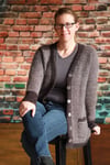 The Stout Weather Cardigan is a cozy 2 color cardigan worked flat from the bottom up. It uses fingering weight yarn and a fuzzy laceweight yarn held double (fingering weight yarn can be substituted for the second color held double).