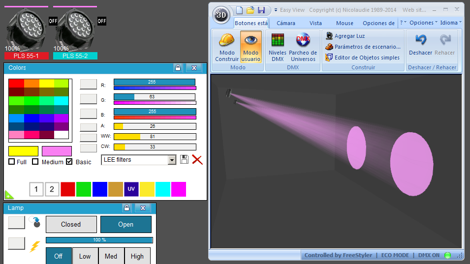 Esta Librería SSL2 está optimizada para trabajar con Magic 3d Easy View. Es decir para ver una representación 3D de las secuencias que estemos realizando con Freestyler, QLC+ o cualquier otro soft que se conecte con Magic 3d.