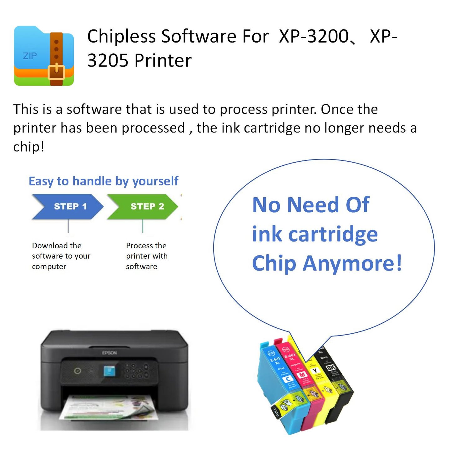 This is a software that is used to process printer. Once the printer has been processed , the ink cartridge no longer needs a chip!