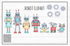 ROBOT FAMILY Hand Drawn Clipart with Robot Dog & Cat Included