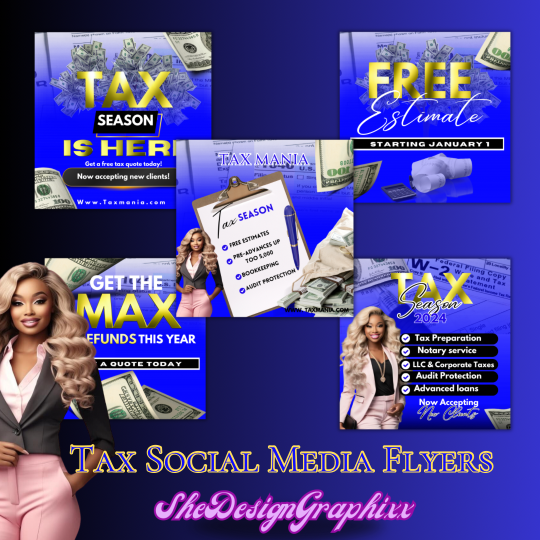 Perfect for a tax preparer who wants to be professional. Includes 5 done for you templates you can edit and make yours! For edit version to edit on Canva please email Senaria.1kelly@gmail.com and I will kindly send you the template link . Thanks.