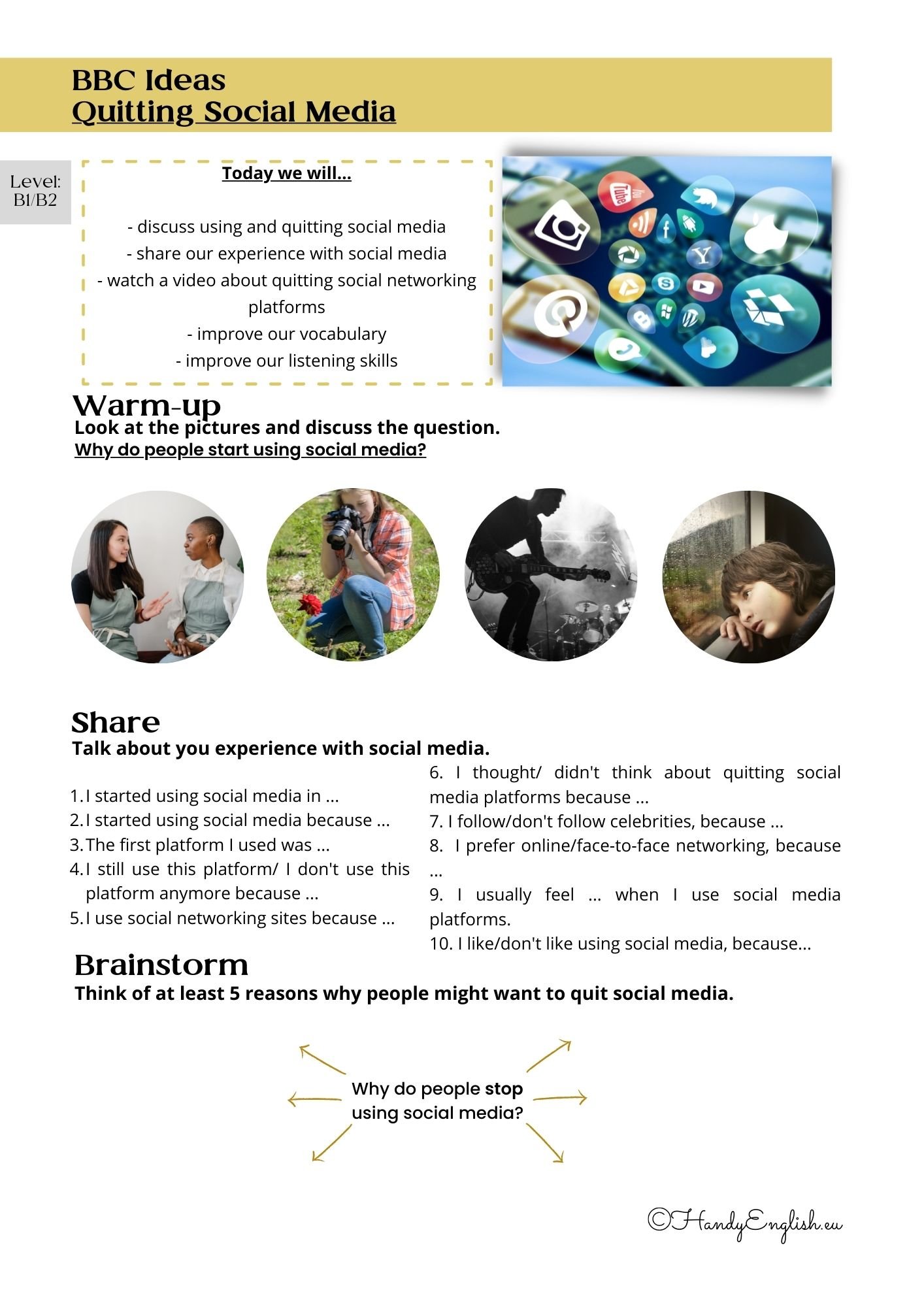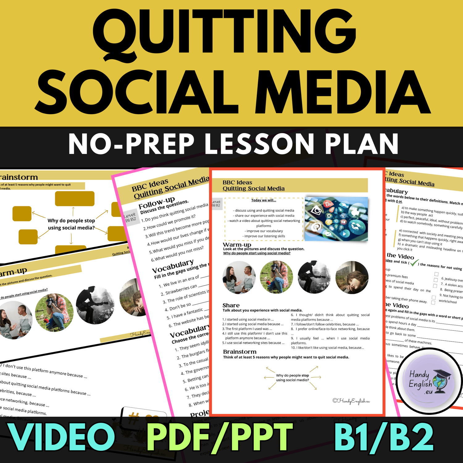 - a no-prep lesson plan based on a video by BBC IDEAS - Quitting Social Media