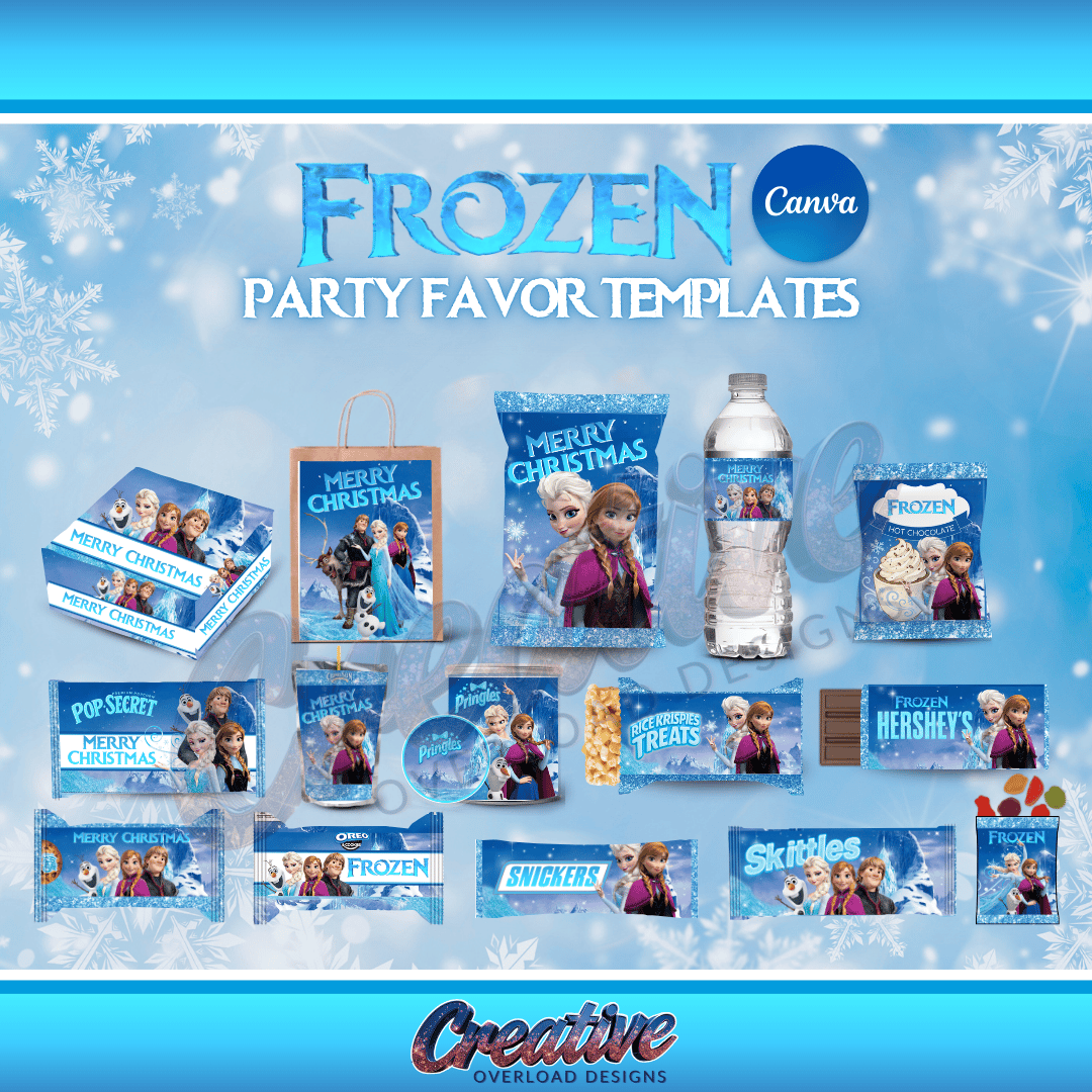 Frozen Christmas Party Favor Templates Bundle- Canva Editable