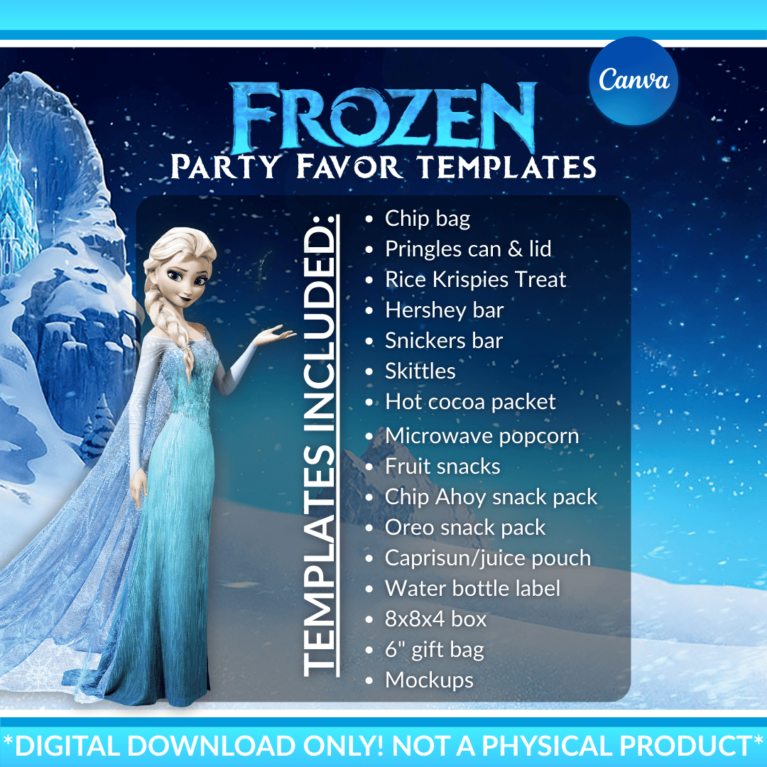 These templates are created with crisp winter tones, glittery snowflakes, and the beloved Frozen aesthetic that kids and adults adore. Your final setup will look cohesive, luxe, and totally Pinterest-worthy — without spending hours designing from scratch.