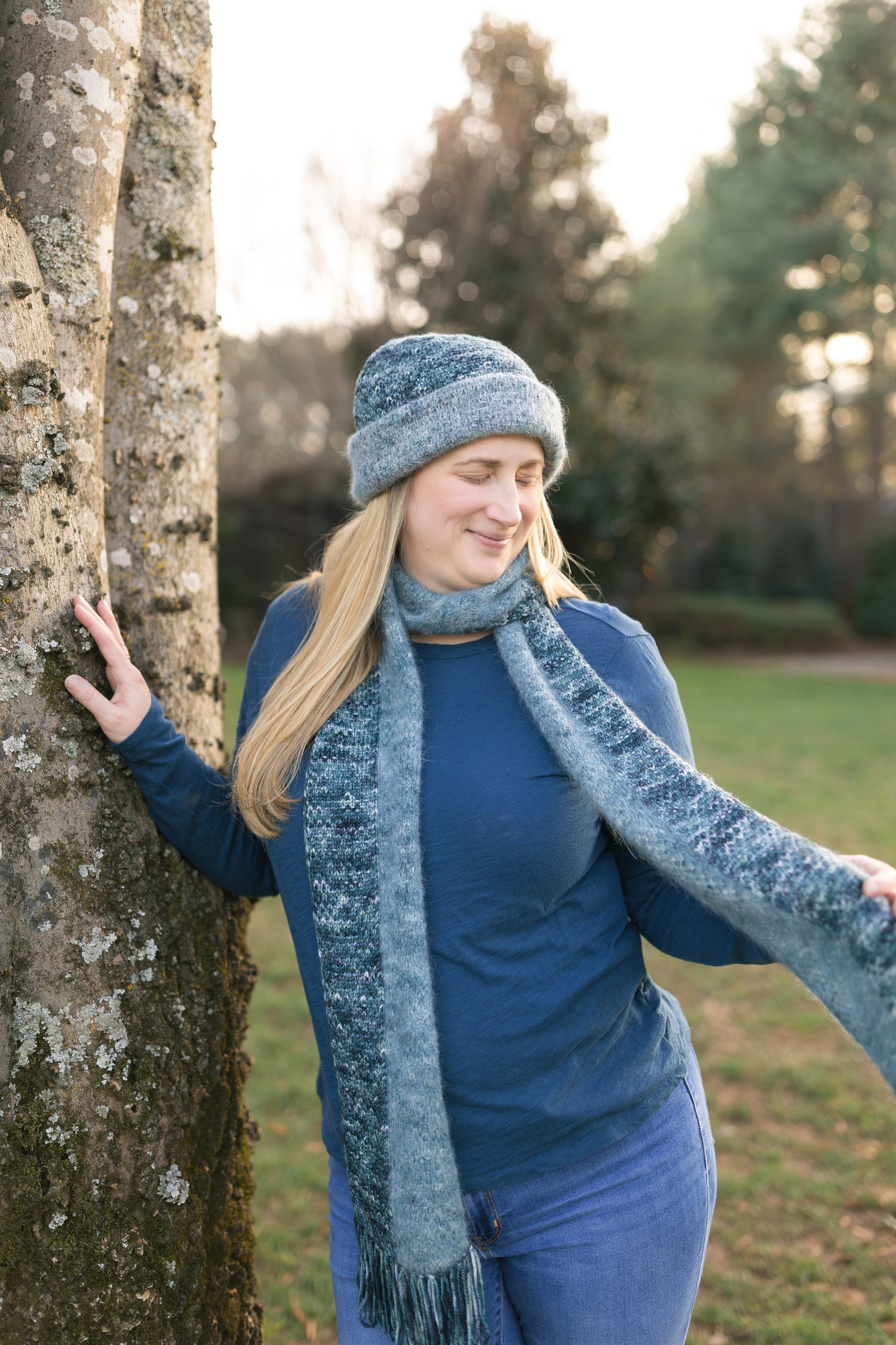 This scarf is just one piece of the VL Knit collection which includes a shawl, hat, and ear warmer as well. Check out the entire collection here.