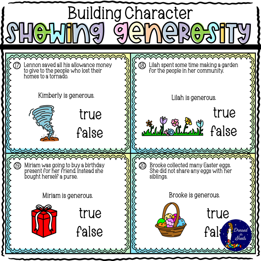 Building Character: Showing Generosity Task Cards