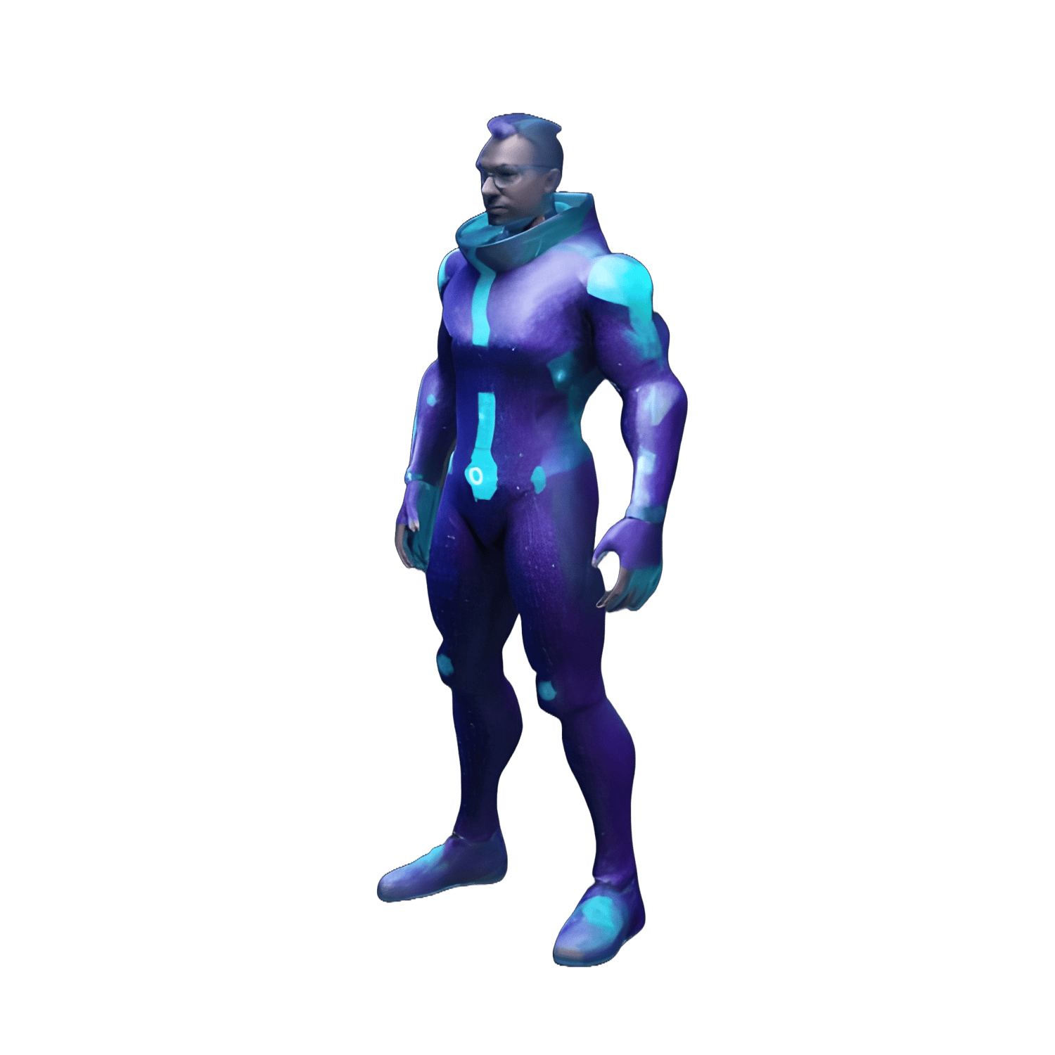 - A street-style character with a modern hoodie and cyberpunk accessories
