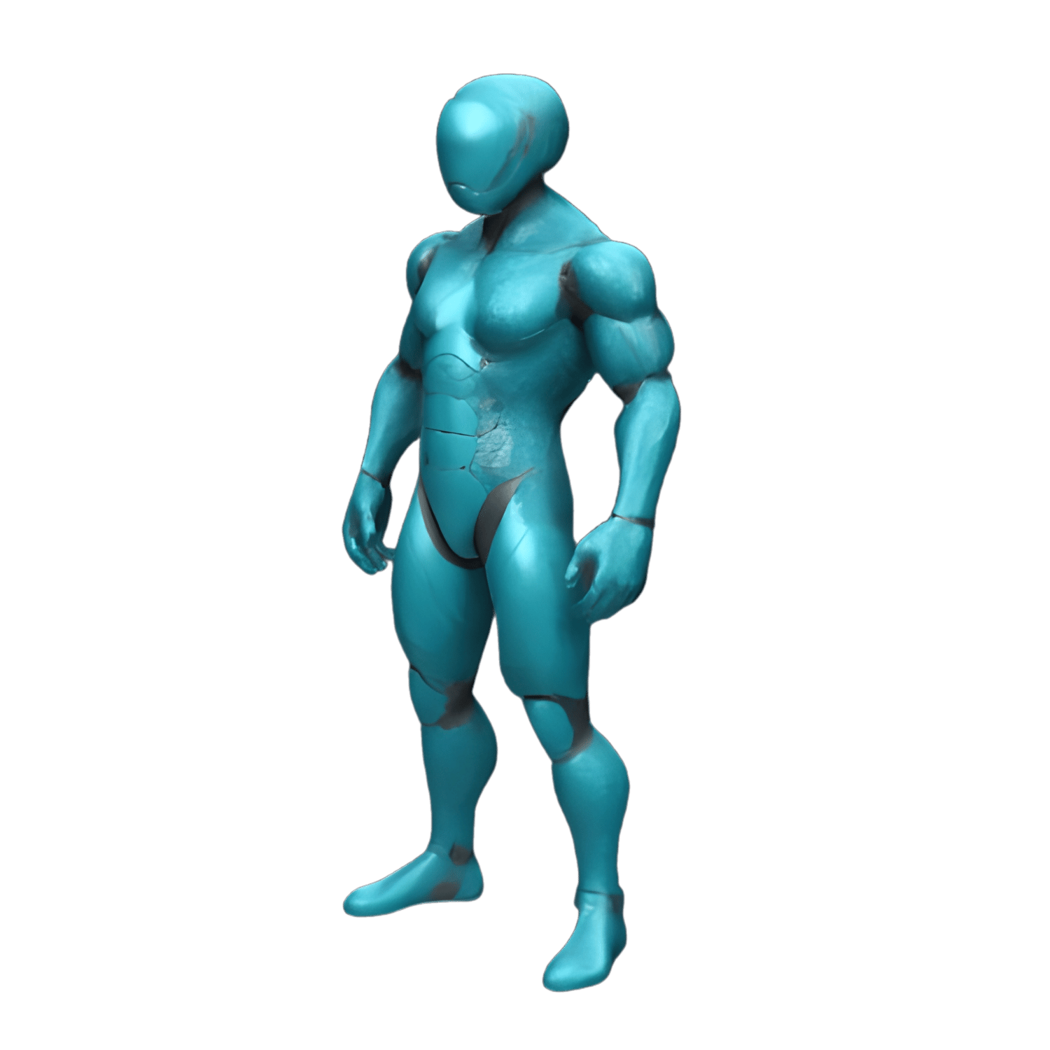 - Two sleek android/robot characters with smooth armor plating and glowing accents