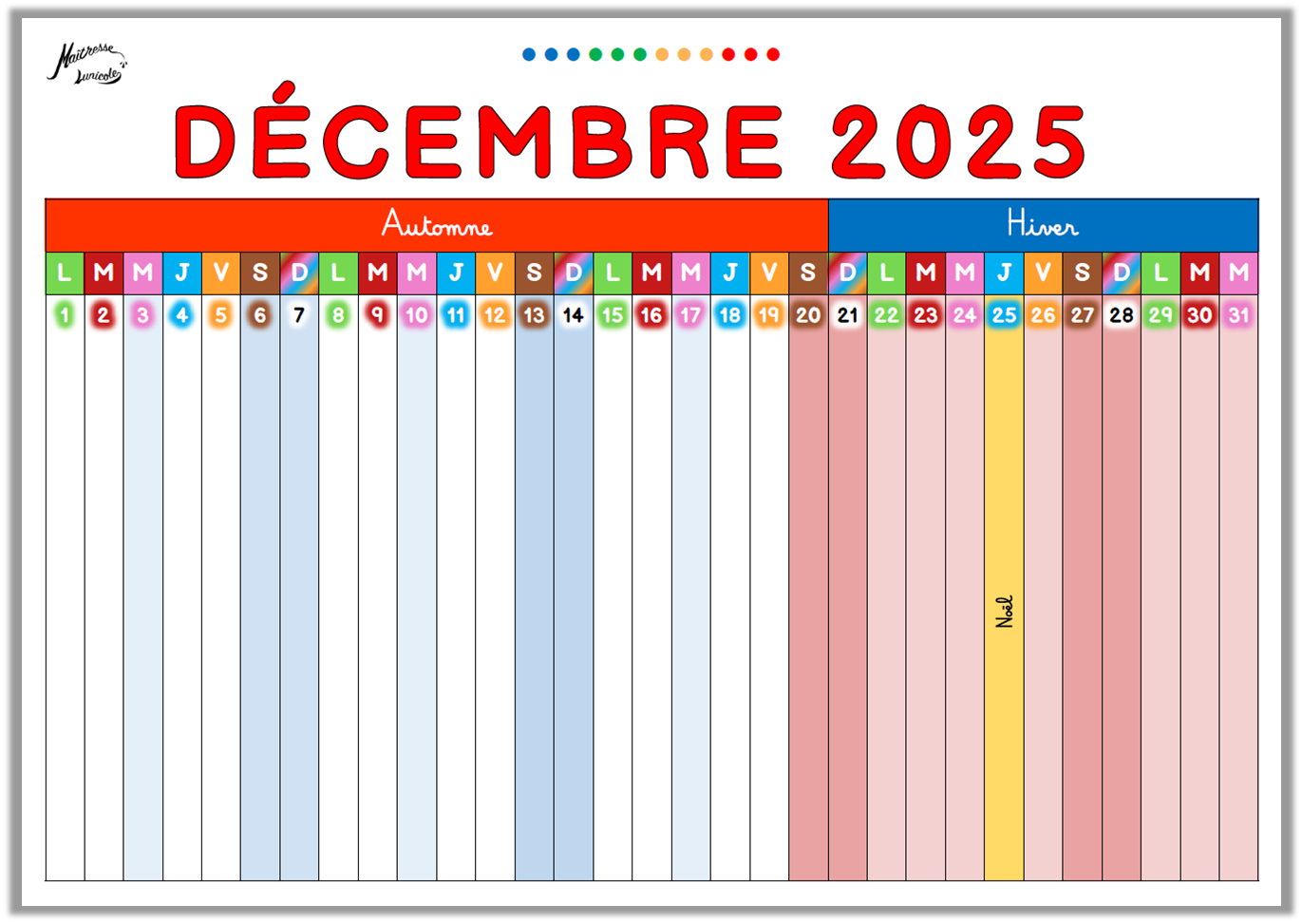 Calendriers pour la maternelle 2025 - 2026.