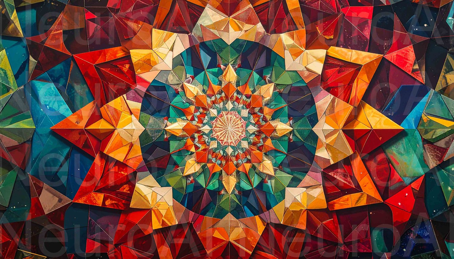 Vibrant kaleidoscope of geometric shapes radiate
