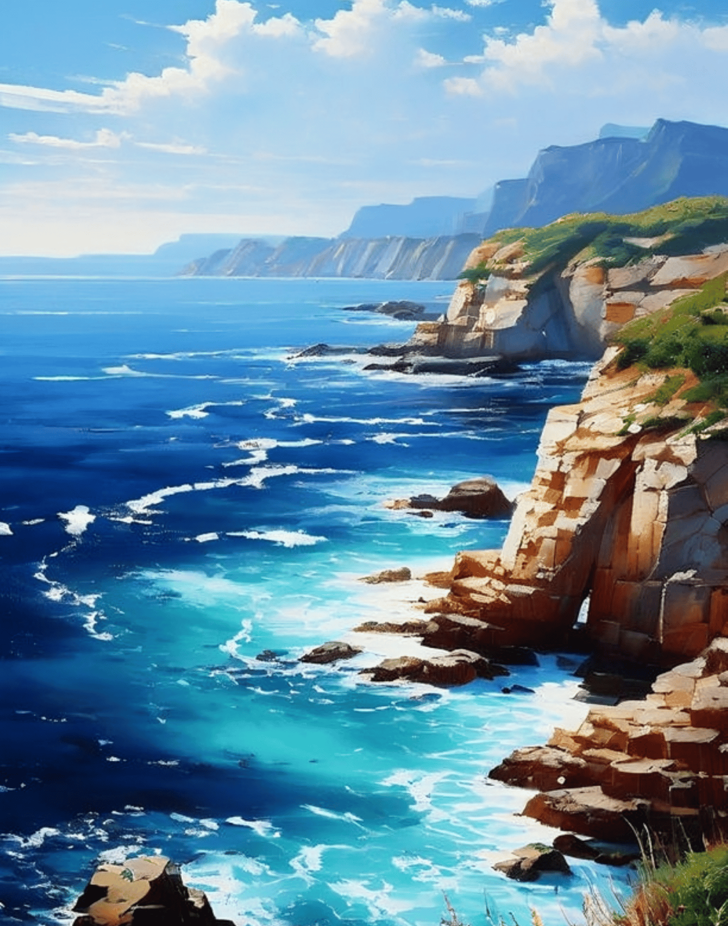 Vintage Rocky Sea Shore, Nostalgic Maritime, Rustic Sea, Painting, Wall Art, Digital Art.