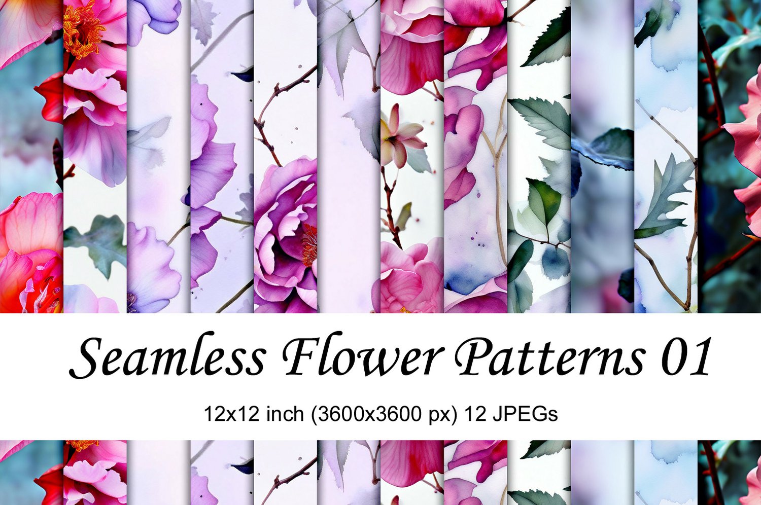 Seamless flower patterns is collection of 12 digital papers. Each paper is in size 3600 x 3600 pixels (or 12×12 inches).