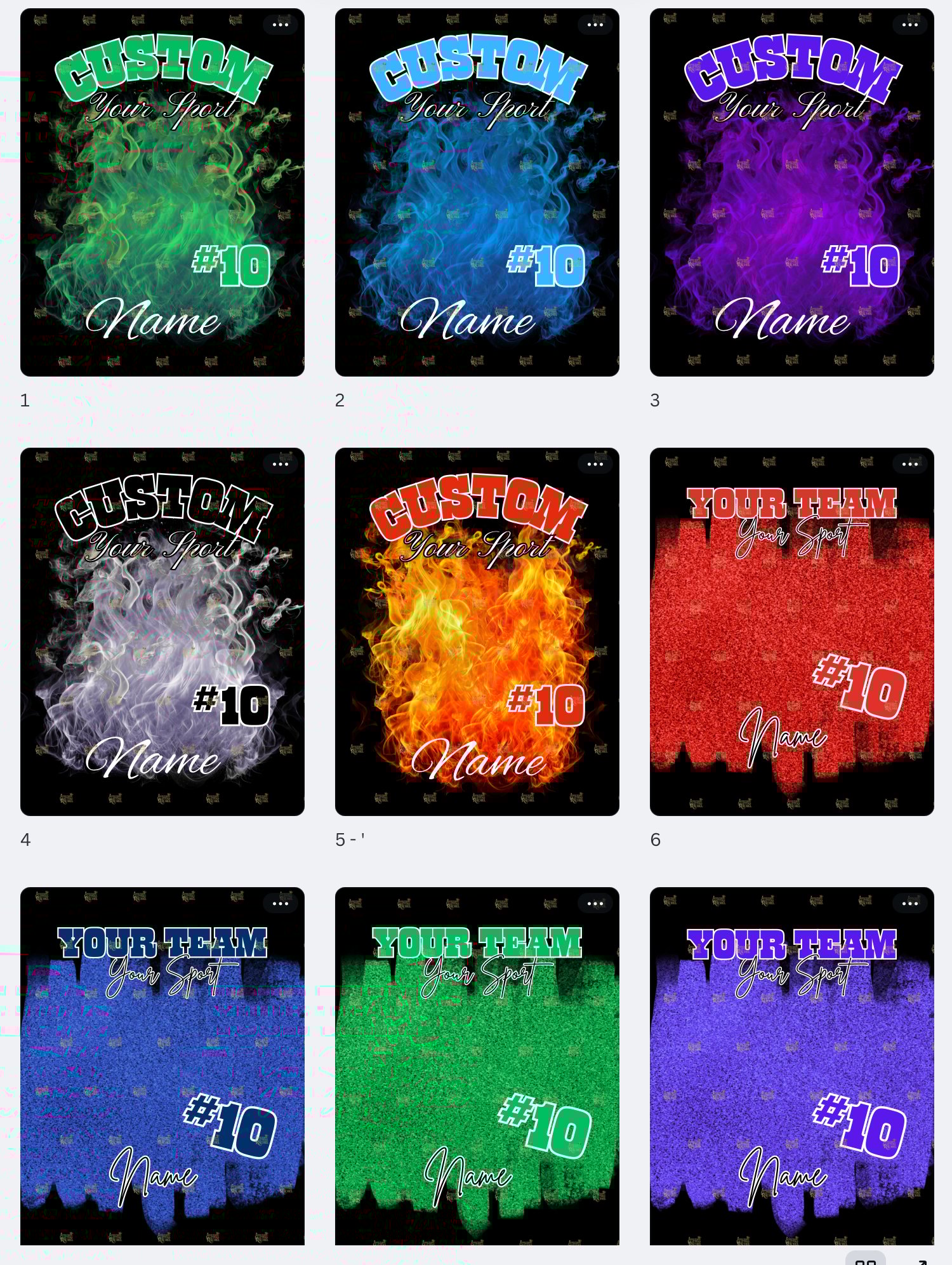 16 sports templates. 3 different types of backgrounds, fire, glitter, and smoke. Different colors in each type. Plus you may edit to your liking in canva. Sized to 8.5x11 but you may resize in canva for whatever project you are working on. Add your team and your player’s name, download and print. Convenient to designs to save you time.
